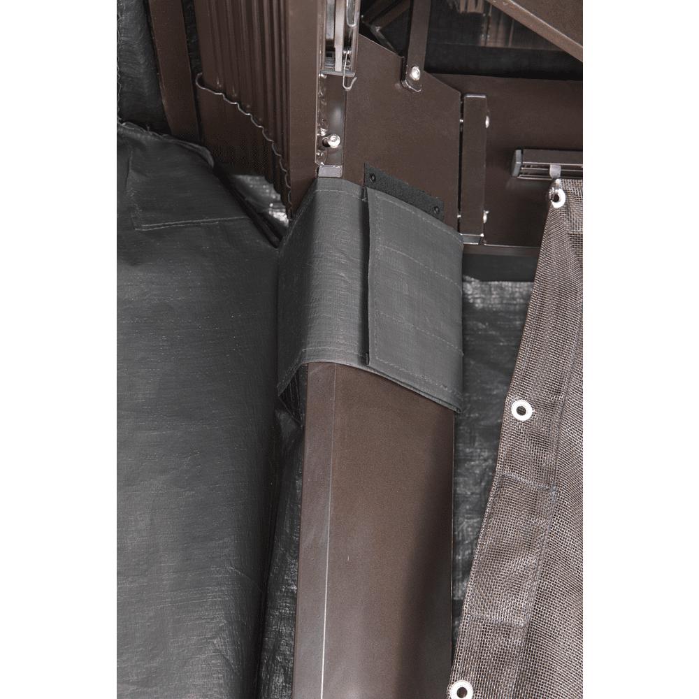 Protect your sun shelter during those harsh winters with this winter cover. Allows you to convert your sun shelter into a practical storage space for your BBQ, patio furniture, etc. Not only does it instantly convert your sun shelter into a backyard shed but it enables you to increase the life of your sun shelter by protecting the roof panels and frame from the elements!Made of polyethylene 200 gr. Brown. Compatible with the Sojag 10′ x 14′ sun shelters only
