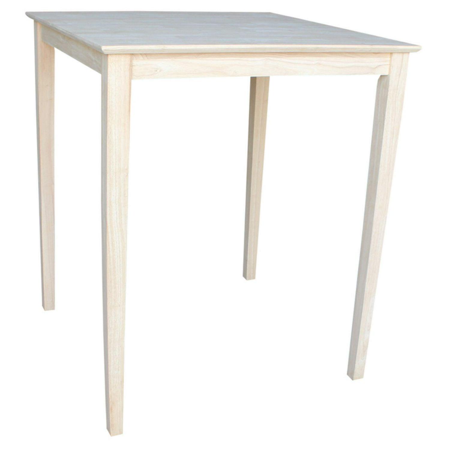 In the future, we’ll be telling stories to our grandkids about how we gathered around the International Concepts Kingsley Square Bar Height Pub Table with Shaker Legs, and they’ll probably end up paying triple for a cheap recreation of this stunning, pub-height dining table. The clean lines and simple, straightforward design make this into a go-to style for modern spaces. Made from solid, unfinished parawood, this chic dining table brings a slick, natural style to a traditional form that shows off a wide table-top, tapered legs and a subtle apron. Parawood is also known as rubberwood, and has become very popular in the construction of furniture for it’s appealing grain and strong, medium-density body.