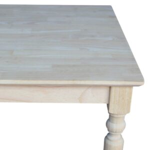 The sleek style of this fixed dining table from International Concepts is the perfect addition to your kitchen, dining room or breakfast nook. This traditional table is crafted from solid wood and is part of a high-quality collection of wood furniture that will easily complement any décor. Parawood a hardwood known for its durable, strong, and environmentally friendly nature is used to craft these classic tables. The table anchors a room as a strong centerpiece, and pairs well with a wide variety of chairs and stools from International Concepts. Whether you prefer to use it for nightly dinners, or working quietly on a hobby, this table gives you the practicality as well as the style you need.