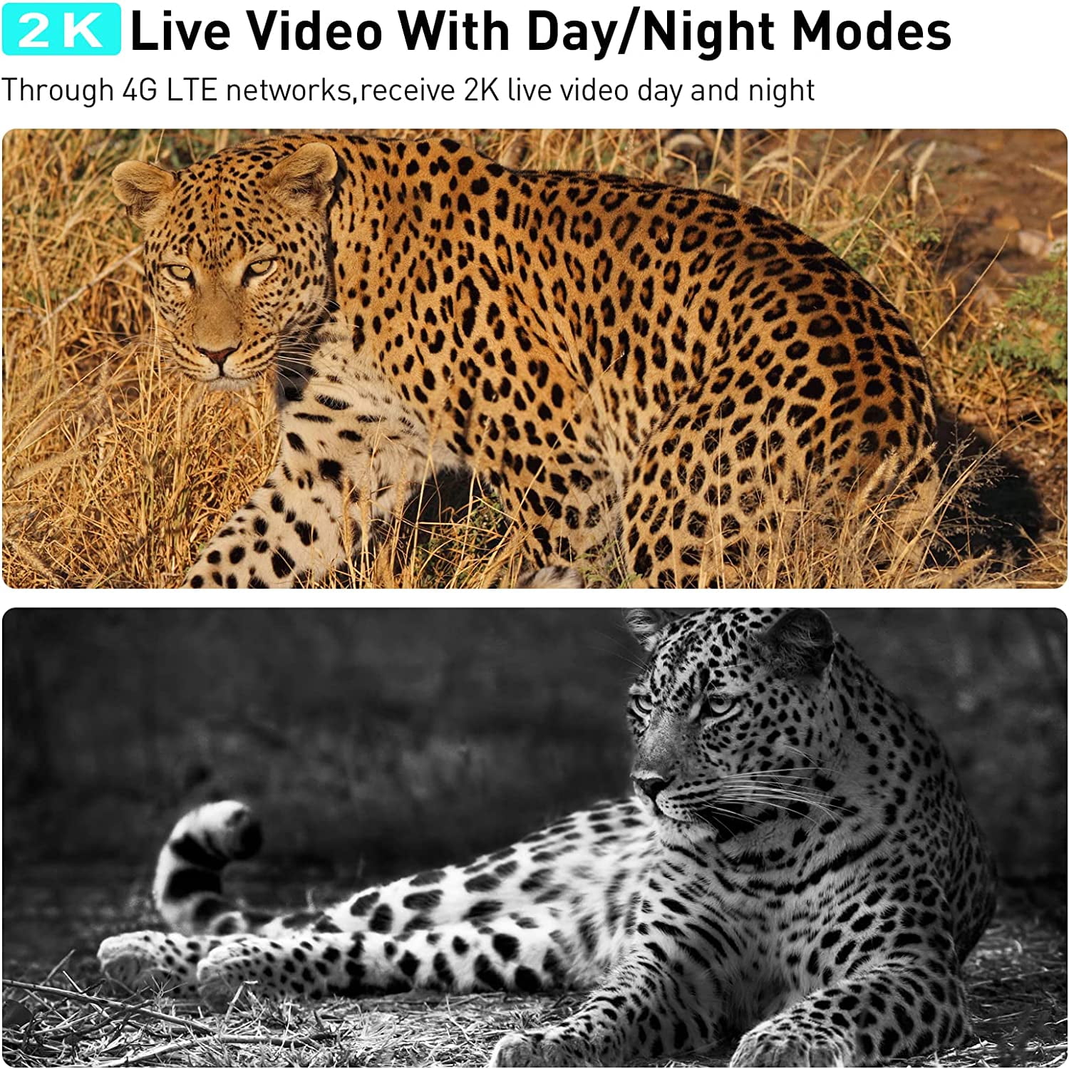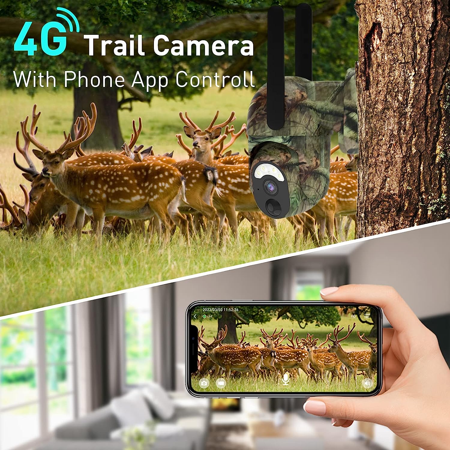 4G Outdoor LTE Cellular Trail Camera Included SIM Card SIM Card Comes With 300M Free Data : Only compatible with North American Countries (USA, Mexico, Canada). To use it, you must insert a local SIM Card. Supports T-Mobile, AT&T. If you use Verizon Network, you need to open the service from your local center. The data is valid for one month after activation. If it run out, you can easily charge it through the app. Built in total 10400mAh high-capacity battery and 6W solar panel Supports remote phone access and control 100% wired-free,2K Resolution and IR LEDs 355°horizontally, and 90°vertically to monitor a large area IP66 waterproof and camouflaged body Phone Playback & Motion Activated Alerts Supports up to 128GB SD card (32G preloaded) Cloud Storage : Offers a free trial for 7 days.