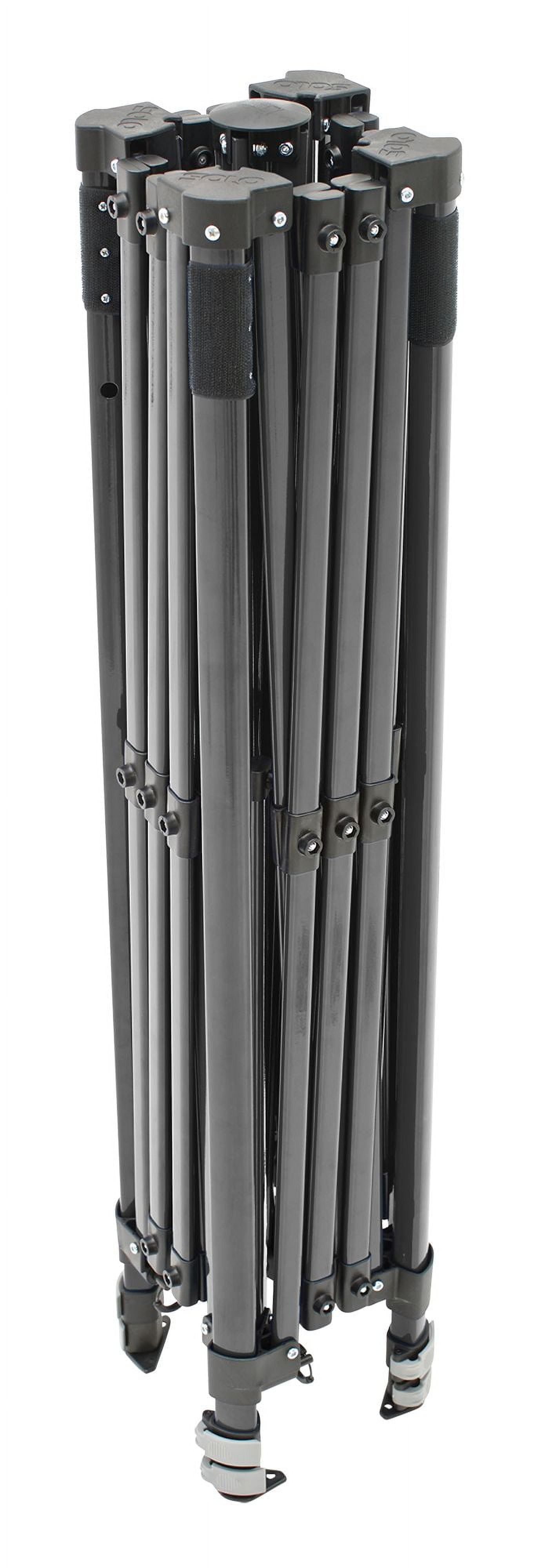 Extra strong trapezoidal legs 3-piece telescoping legs offer infinite height options Intuitive cam lock levers for ease of use 150D polyester top with 300D ripstop for a durable fabric cover Nylon feet for stability and floor protection Micro glide Teflon bearings 4 ground stakes for each leg for adequate anchoring Quick and easy one-person setup Features an easy to carry travel bag