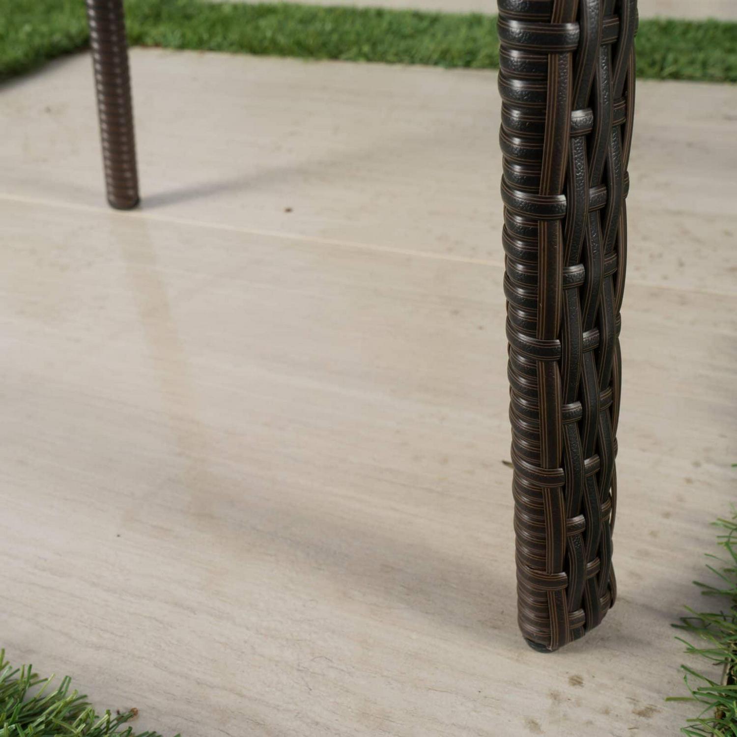 With this Solomon Wicker Stacking Chairs – Set of 4, you’ll always have room to seat more guests. This set includes four patio chairs that stack for easy storage when not in use. The chairs boast durable, lightweight frames wrapped in dark brown polyethylene wicker. Each is topped with a water-resistant fabric cushion. The fabric comes in a range of color options.