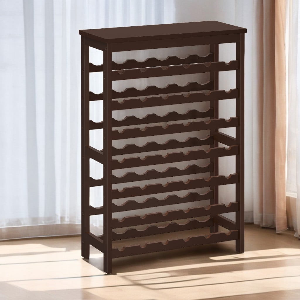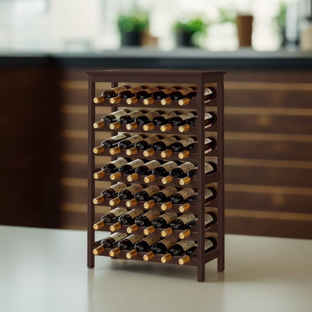 Features: CAPACITY TAKES TOP SPOT: Enjoy an at-home wine tasting trip with your dearest friends with this spacious 42-bottle wine rack; it’ll safely hold your ever-expanding collection—there’s even room to leave some to age, too! KEEP YOUR WINE FRESH: Specially designed wave bars keep bottles stable and keep the corks fully moisturized so your wine stays fresh; each bottle is accessible and well-protected GAINS FROM BAMBOO: Renewable, eco-friendly, vibrant aesthetics, anything else? Durable, definitely! Well-sanded and smoothed out by espresso lacquer, this wine holder with inherent quality and detail-oriented crafts is ready to serve you for years—the same way as your wine TAKE IT EASY: With a simple structure and numbered parts provided, assembly has never been this fast and easy—simply tighten the screws with the straightforward instructions and you’ll have this wine rack set up in no time Specifications: Color: Espresso Product Size: 26″L x 11.4″W x 39.2″H (66 x 29 x 99.5 cm) Package Contents: 1 x Wine Rack 1 x Accessory Kit 1 x Anti-Tip Strap 1 x Instructions