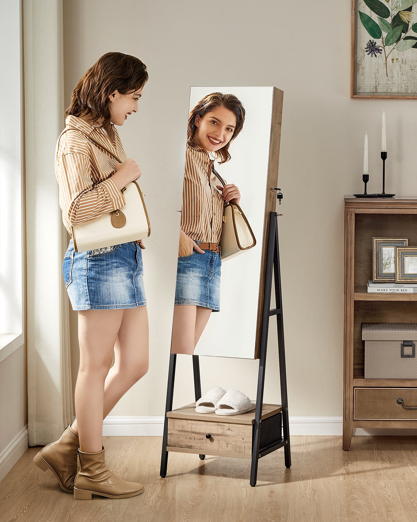 Getting Ready Becomes Effortless: Have all your jewelry right in front of you, organized, and tangle-free, with a built-in lighted mirror for you to apply makeup and accessorize your look, and a full-length mirror for you to check yourself out—with this jewelry armoire with mirror, your morning primping will be rush-free and effortless! Awesome Gift Idea: A chic look, the 2-in-1 design (a full-length mirror with jewelry storage), and fine workmanship make this lockable jewelry organizer a perfect birthday or anniversary gift for your loved ones or a special treat for yourself!