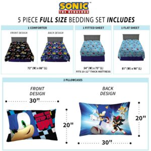 Sonic the Hedgehog Kids Full Bed in a Bag, Gaming Bedding, Comforter and Sheets, Black, Sega