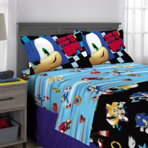 – SEGA SONIC THE HEDGEHOG DESIGN: Sonic brings his high-speed style to bedtime with this cool and colorful bedding set. Featuring Sonic the Hedgehog, Shadow The Hedgehog, Tails, and Knuckles The Echidna from the popular Sega franchise, this action-packed set is sure to be a hit with young gamers.