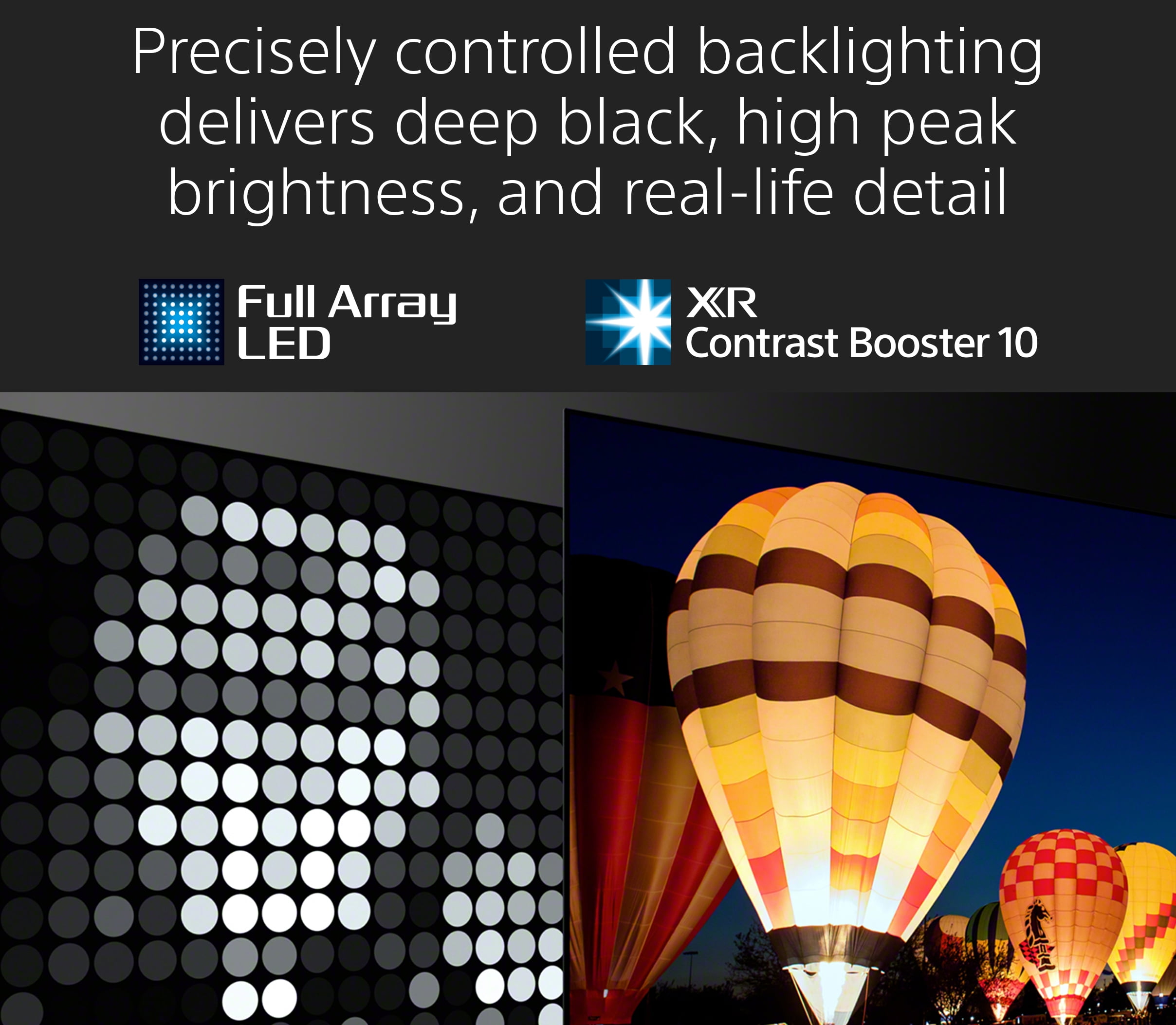 Real-life picture with enhanced contrast: Make movies and games come to life with the immersive detail and contrast of Full Array LED powered by the intelligent Cognitive Processor XR. See billions of accurate colors each reproduced with the subtle differences of the real world with XR Triluminos Pro. XR Contrast Booster 10 further enhances the dynamic range of the picture bringing out the beauty in everything you watch. Next-generation picture and sound with Cognitive Intelligence: See how real your entertainment becomes and experience immersive depth and lifelike picture quality powered by Sony’s intelligent Cognitive Processor XR™. Revolutionary TV processing technology delivers enhanced contrast with detailed blacks and natural colors. Hundreds of thousands of individual on-screen elements are processed and remastered in the blink of an eye boosting color contrast and clarity bringing astounding realism to your content.