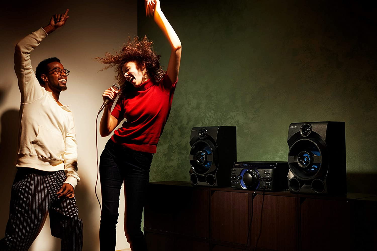 The good times start here with the mhc-m20 three-box sound system. Wireless audio streaming with Bluetooth makes these speakers great for parties.1 add in a host of other features, like CD playback, karaoke function, and mic inputs, and the mhc-m20 will have you and your friends dancing till dawn. NFC: No/Seamless streaming with Bluetooth. Sing along to party anthems with built-in mic input. Enjoy high-quality Bluetooth streaming with LDAC. Pair up to three smartphones with a multi-device connection. Boost the quality of your music with a Digital Sound Enhancement Engine. Boost the party with a Wireless Party Chain. Control music and sound settings from your phone with the Fiestable App. In the box: AC power cord, FM antenna, remote control, aaa batteries, operating instructions, instruction manual, quick set up guide