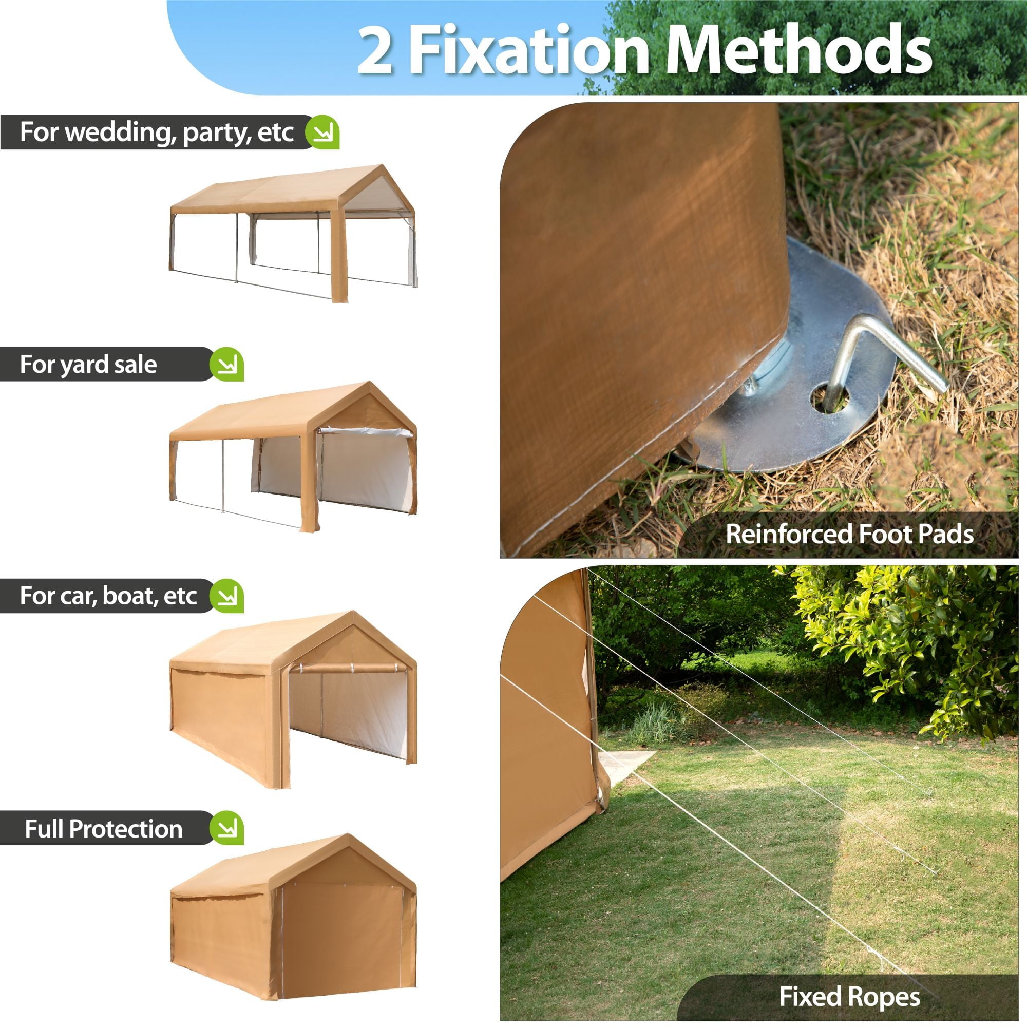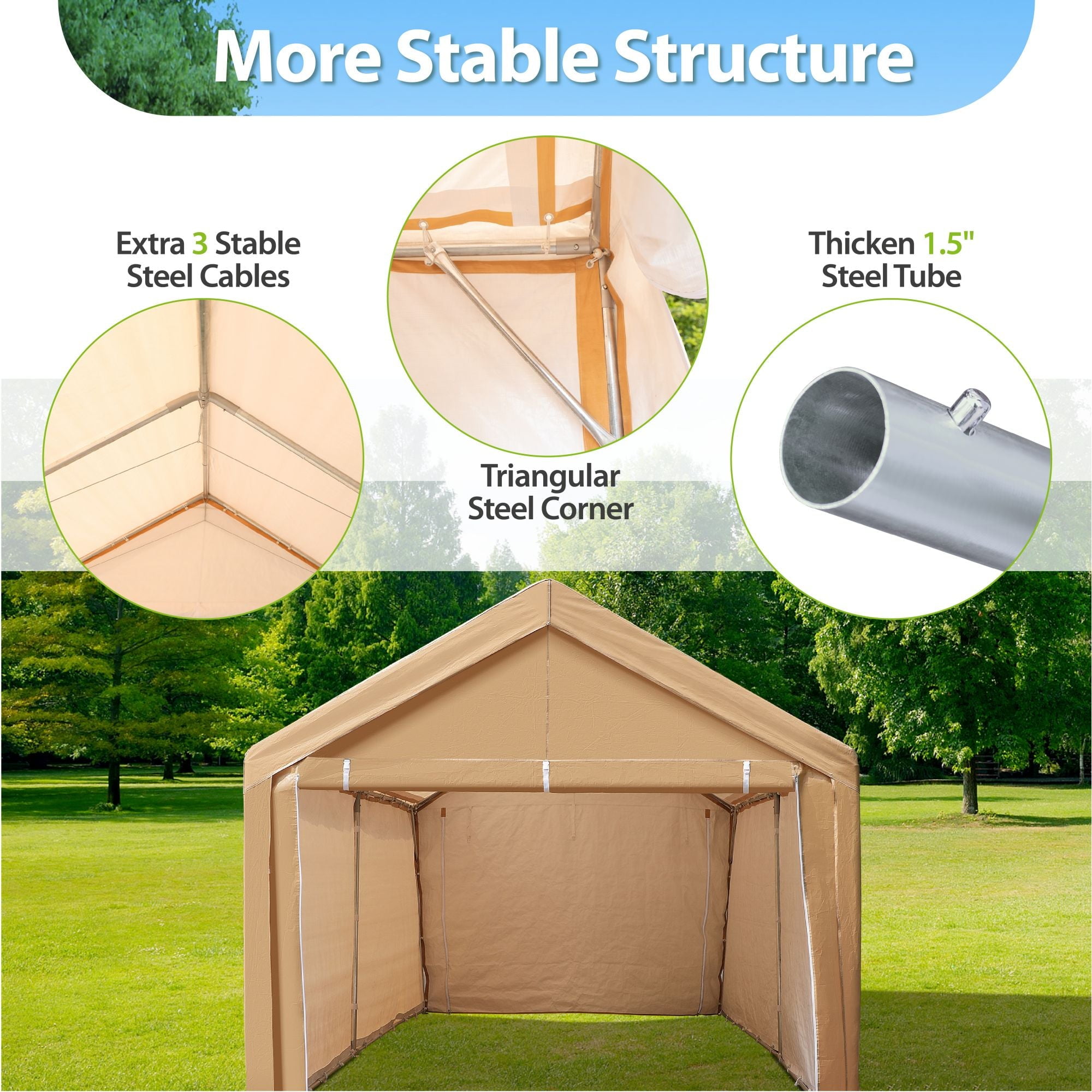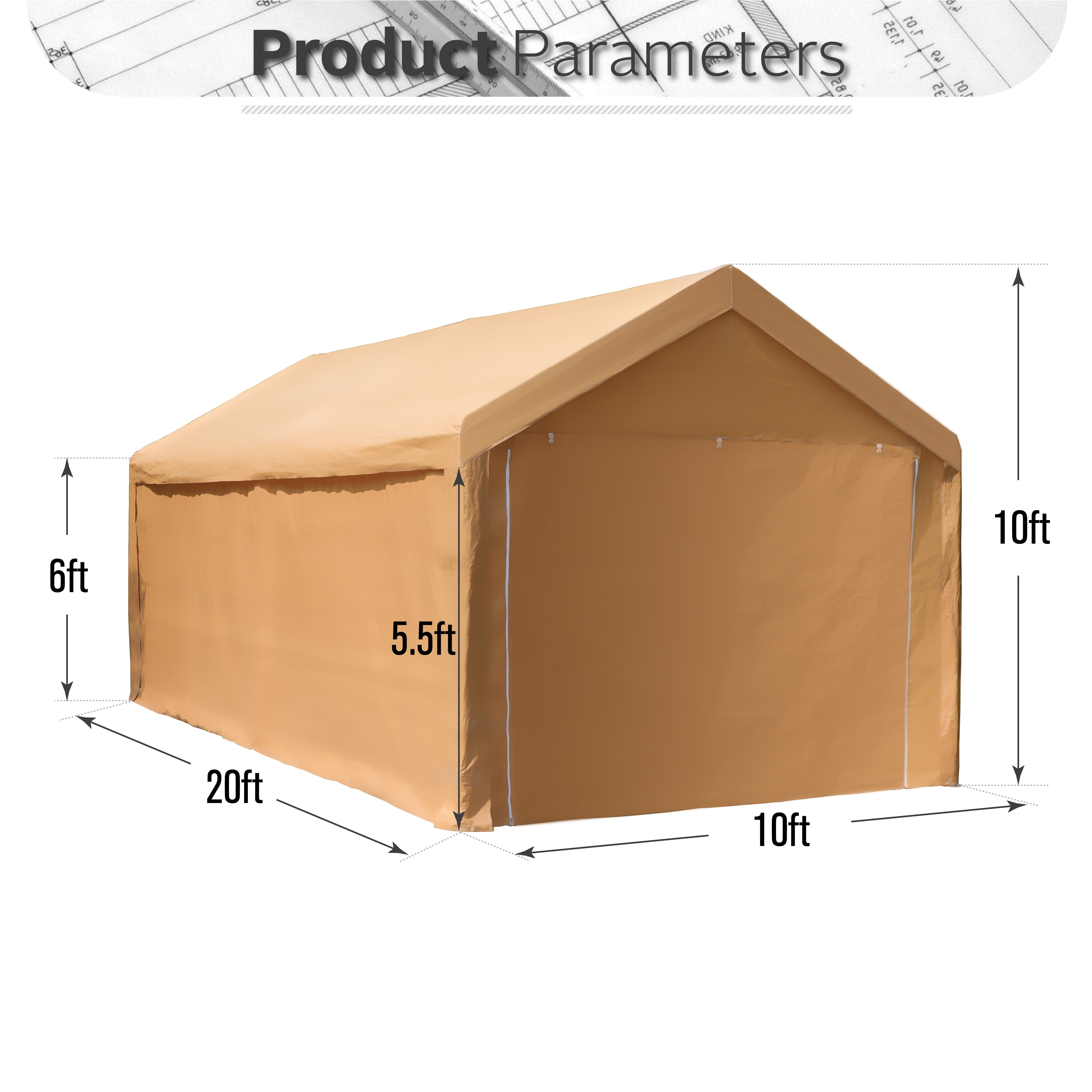 Sophia & William 10′ x 20′ Heavy Duty Carport Storage Shelter Car Canopy Tent with Side Walls, Beige
