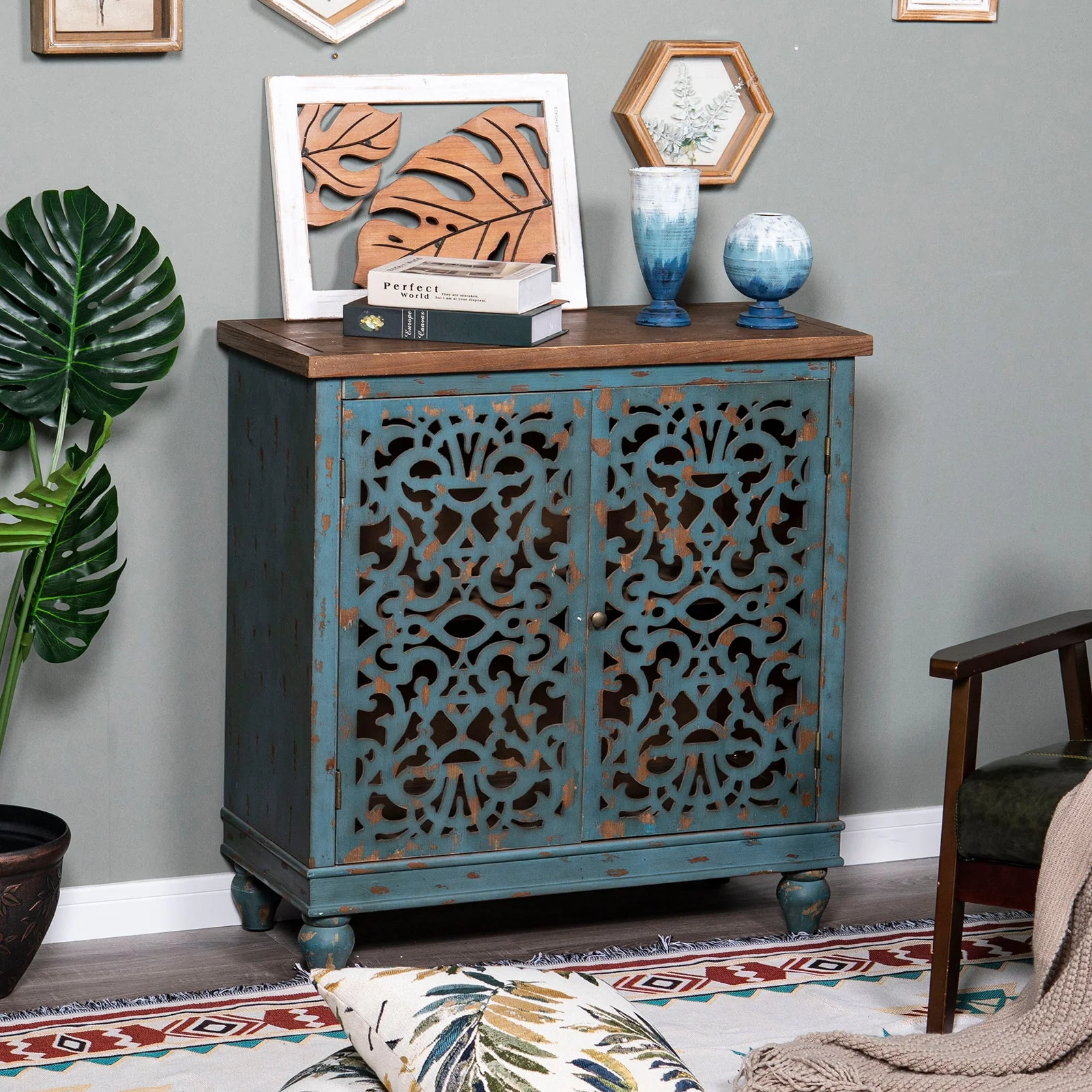 Sophia & William Hollow-Carved Credenzas and Sideboards, Wood Blue, 2 Shelves