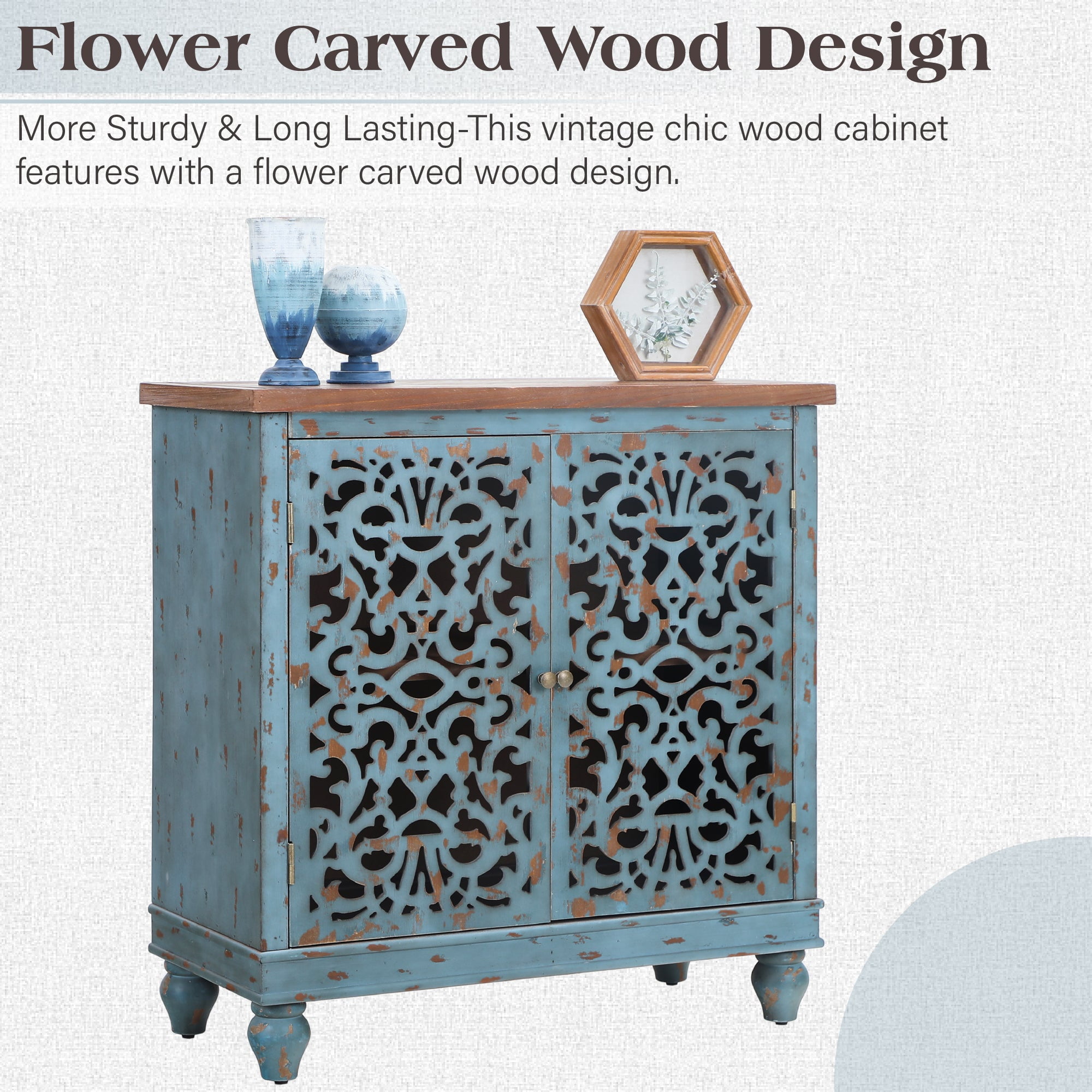 Our storage cabinet which is distressed style, simple and retro. It will bring comfort to your living area, not only as furniture, but also as home decoration. It can place anywhere you wanted- such as hallway, entryway, bedroom, living room and kitchen in home and office, ideal storage helper and home decor. Made of PB, MDF and wood veneers in an antiqued finish. The 4 legs made of solid wood ensure durability, balance and large load capacity. These storage cabinet overall finish is quite smooth and meticulous without any smell no harm and easier to clean. Specification: Color: Blue Material: MDF(medium-density fiberboard) Dimension: 33L x 15” W x 34”H Load Capacity: 245 lbs