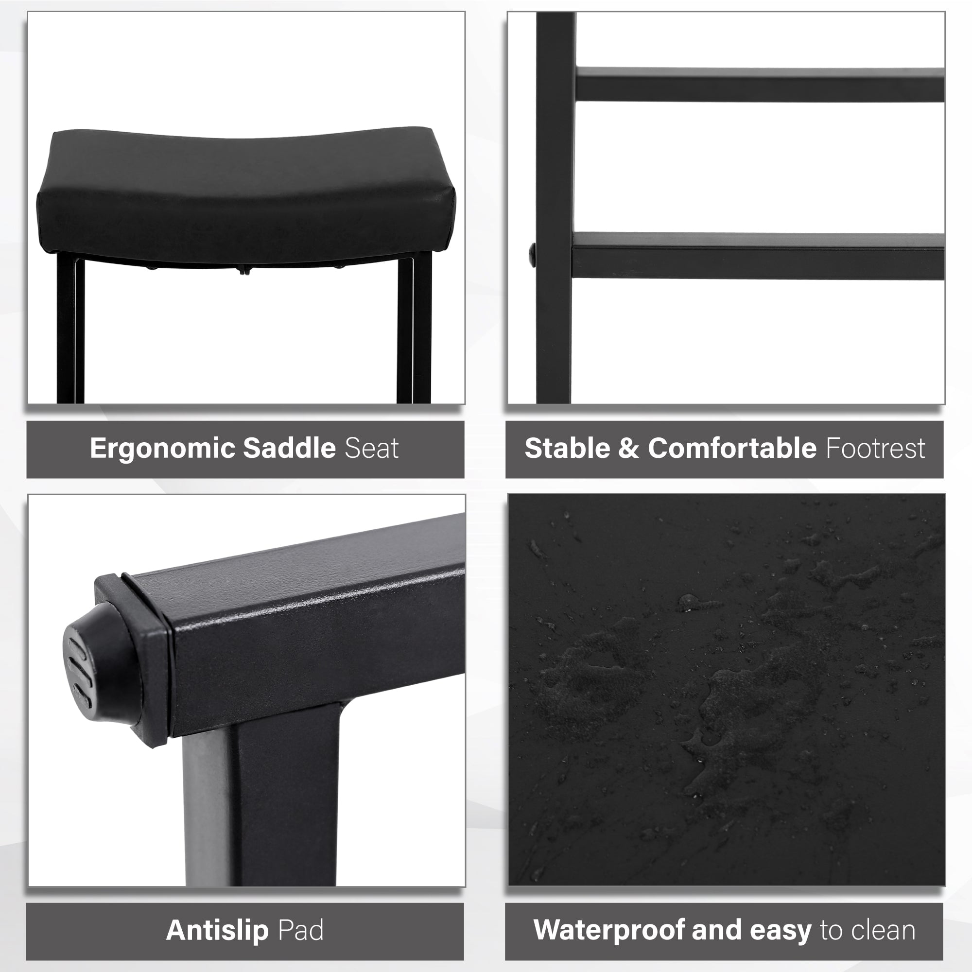 Sophia & William 24″ Counter Height Bar Stools Saddle Bar Stools-Set of 2-Black