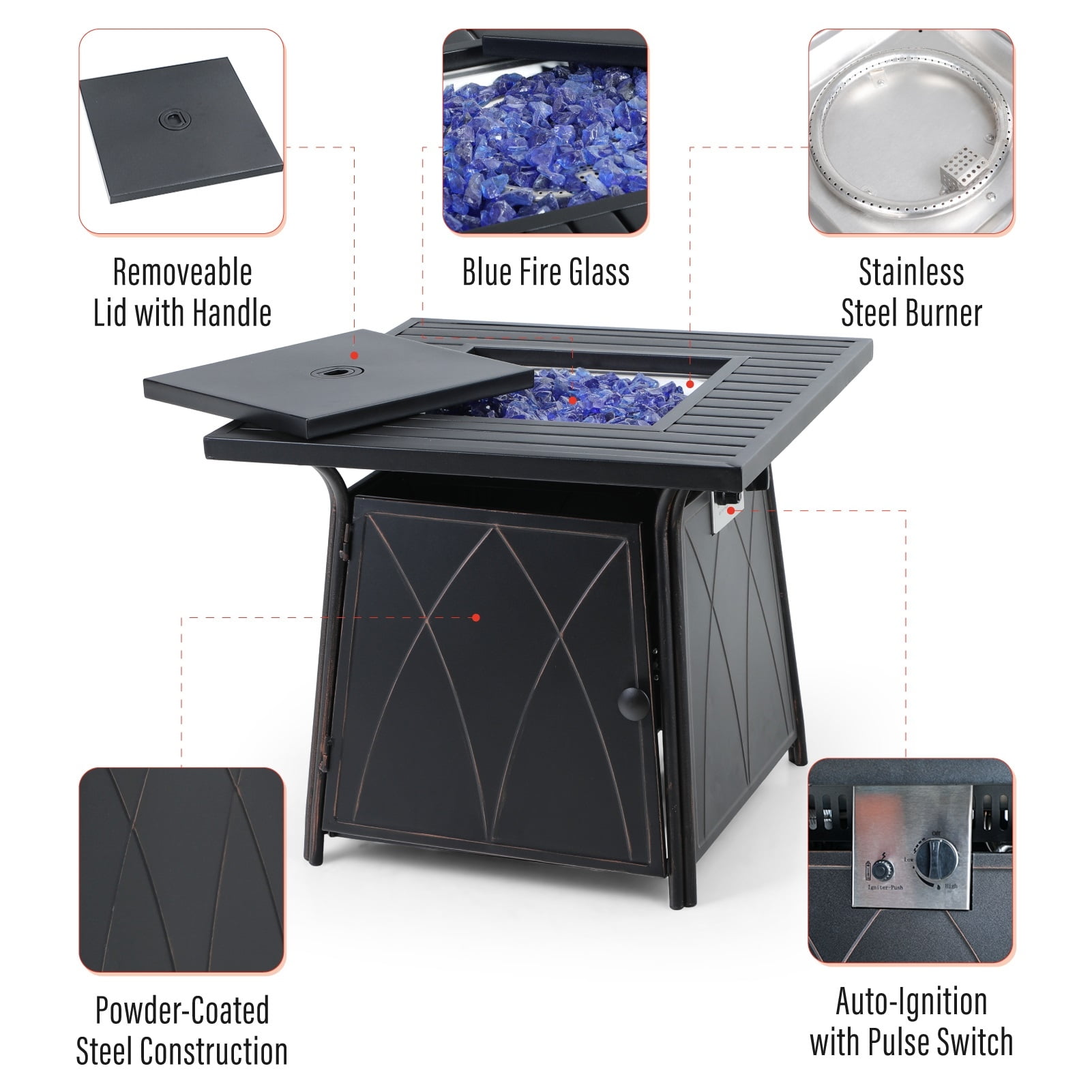 Sophia & William 28 inch Outdoor Gas Fire Pit Table with Lid 50,000 BTU