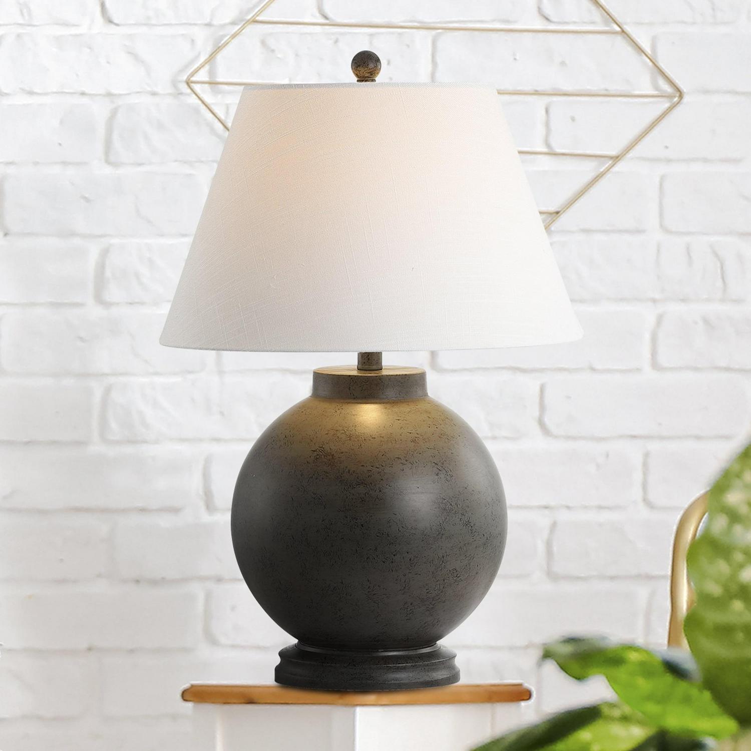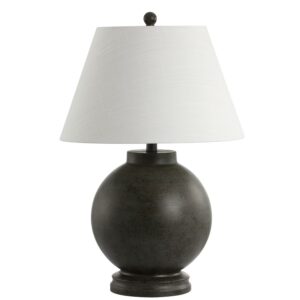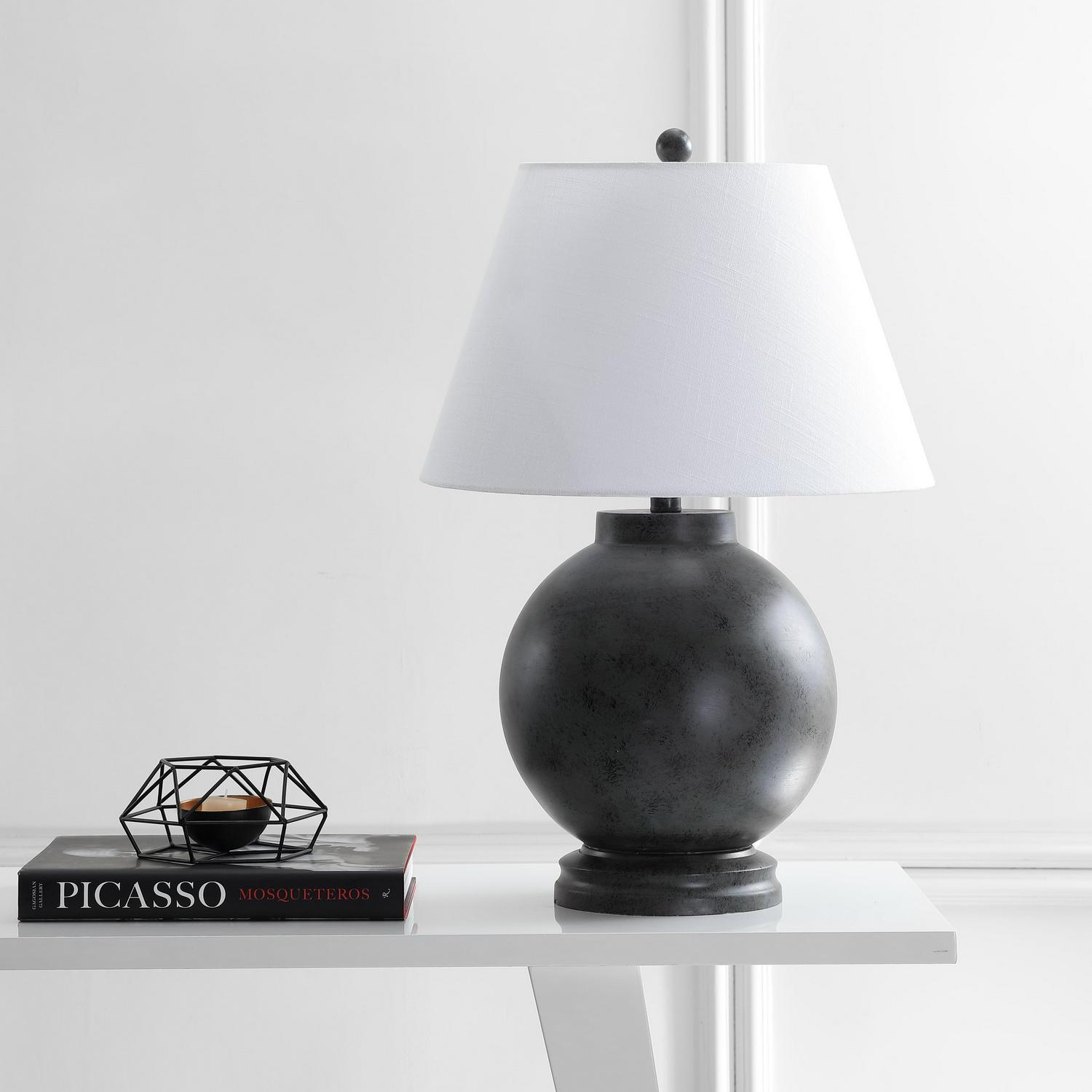 This sphere-shaped lamp base is both cheerful and sculptural in a Dark Gray glaze — the perfect statement piece on desks or consoles. The finish extends to the finial and base for a clean and streamlined look. Crafted in resin and topped with a white cotton empire shade.