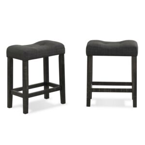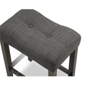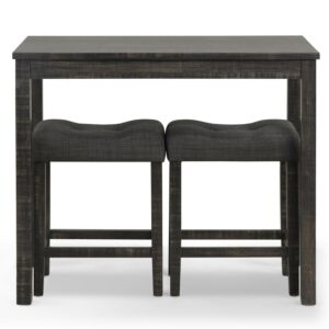 Make the most of your dining space with the Sora Wood 3-Piece Counter Height Dining Set. This space-saving set includes a rectangular counter height table and two saddle stools. A taller height makes this dining set comfortable for both seated guests and those who walk up to chat or help with homework. The stools are upholstered with soft fabric. The dining set is available in gray and taupe finish.