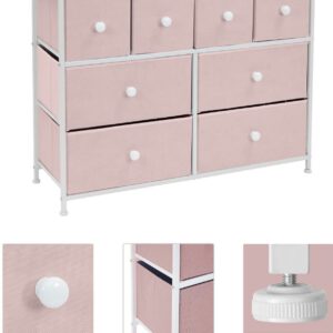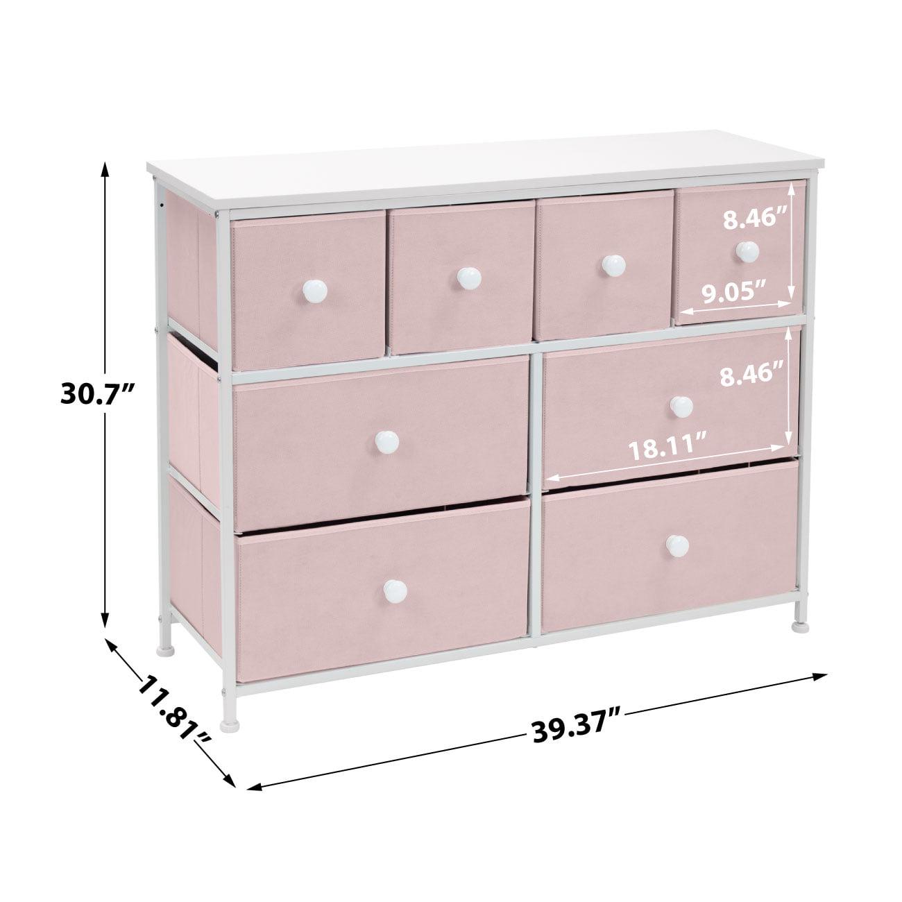 Tuck away your essentials in the Sorbus 8-Drawer Dresser. Sleek and minimal, this furniture piece features a faux wood top surface and a strong steel frame. Each drawer pulls out to reveal all your clothing, linens, and more. Place anywhere from your bedroom, office, or college dorm to get organized in style. The lightweight frame makes this unit easy to transport and when not in use, simply fold the fabric drawers flat for storage. Use alone or pair with similar styles from the Sorbus Furniture Collection. Great for any room. Add this charming dresser to your primary bedroom for storage or spare room filled with blankets and towels for guests. Set a framed photo or potted plant on its tabletop surface for that final touch. Place in any walk-in closet to organize your wardrobe and accessories. Use in a college dorm or use in the nursery and playroom for toys, clothing, and baby products.