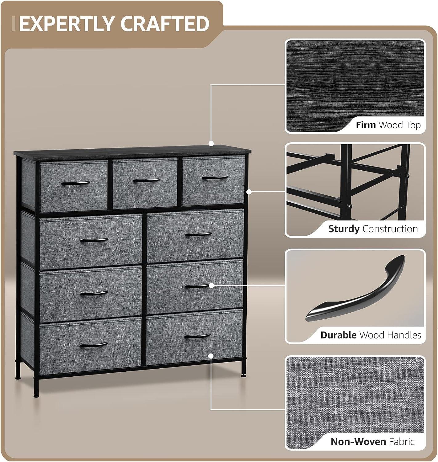Sorbus Dresser – 9-Drawer Storage Unit for Bedroom, Closet and Office – Easy Pull Fabric Bins (Black)