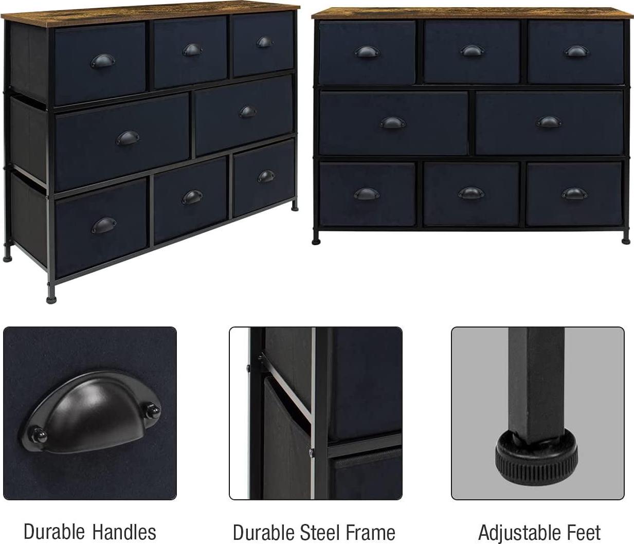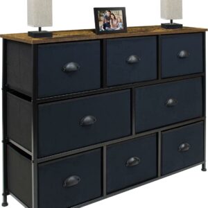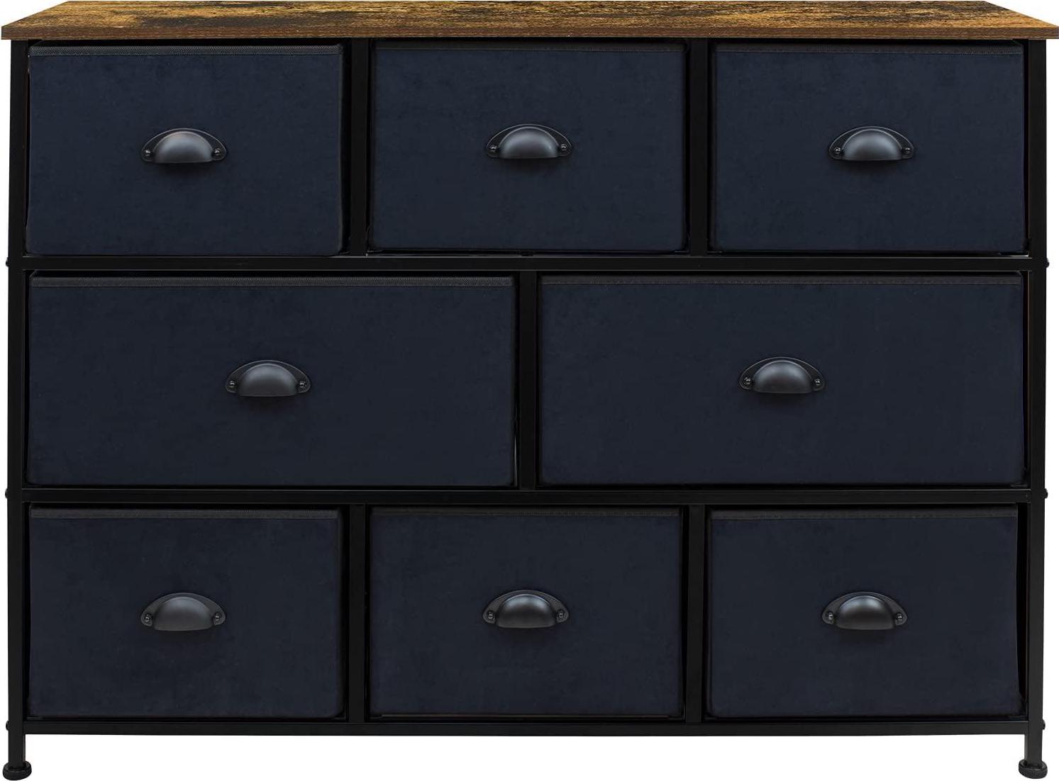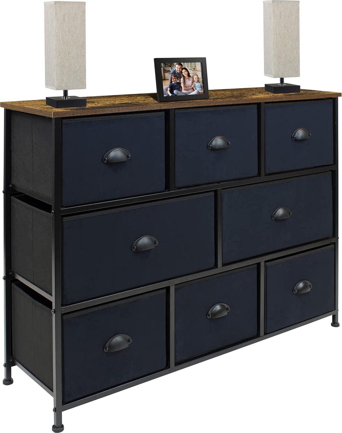 Tuck away your essentials in the Sorbus 8-Drawer Dresser. Sleek and minimal, this furniture piece features a rustic wood top surface and strong iron frame. Eight drawers pull out to reveal all your clothing, linens, and more. Place anywhere from your bedroom, office, or college dorm to get organized in style. The lightweight frame makes this unit easy to transport and when not in use, simply fold the fabric drawers flat for storage. Use alone or pair with similar styles from the Sorbus Furniture Collection. Getting organized has never looked better.