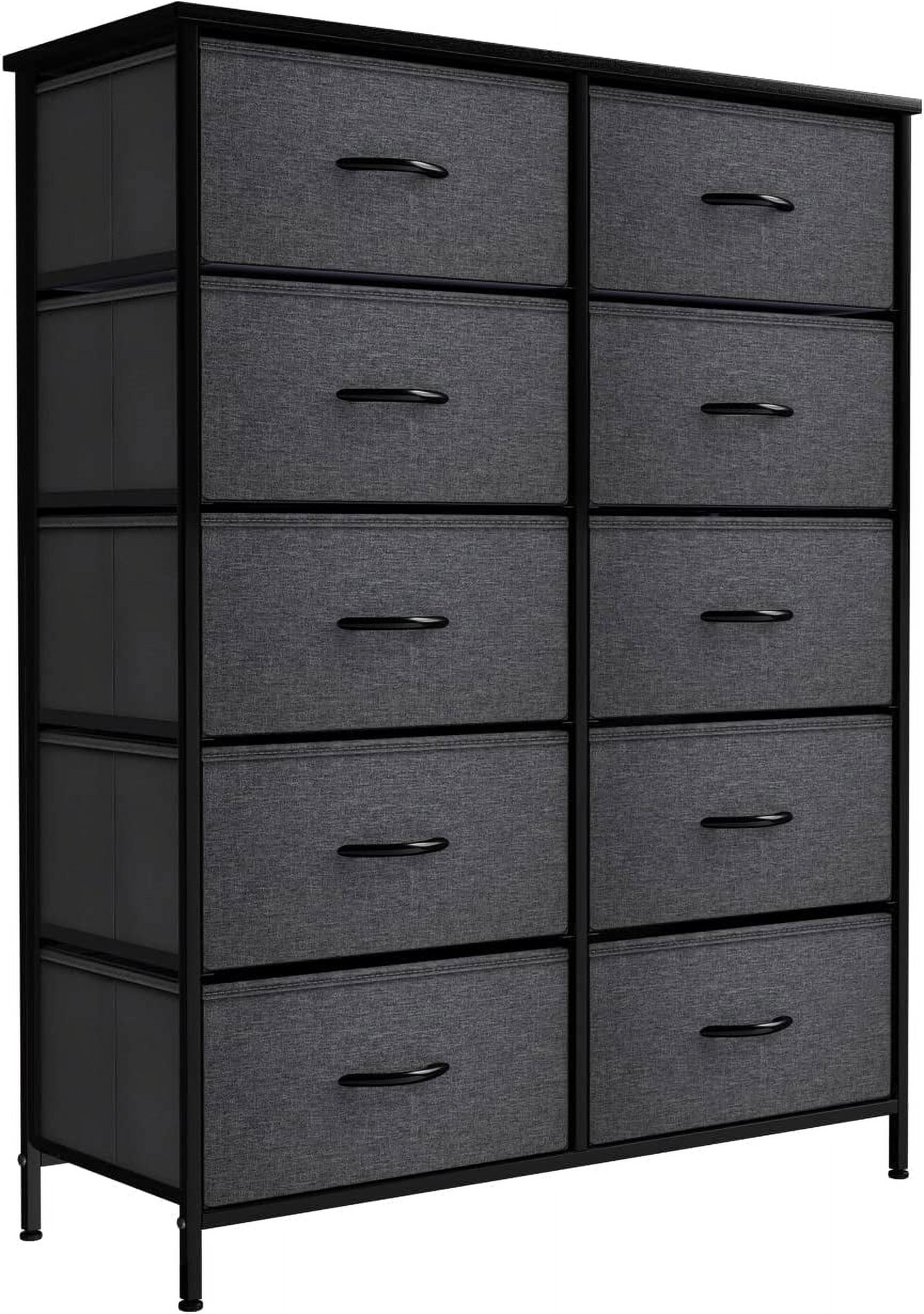 Sorbus Dresser with 10 Drawers – Storage Unit Organizer Chest for Clothes – Bedroom, Hallway, Living Room, Closet, & Dorm Furniture – Steel Frame, Wood Top, and Easy Pull Polyester Fabric Bins
