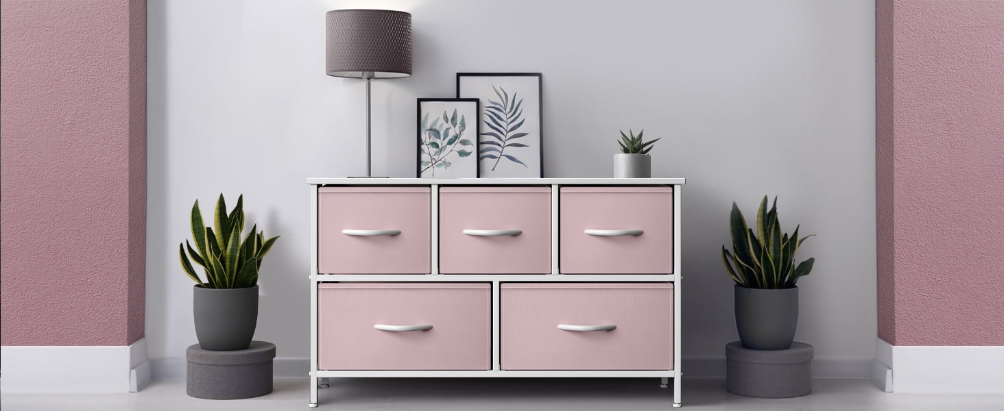 Sorbus Dresser with 5 Drawers – Furniture Storage Chest for Kid’s, Teens, Bedroom – Pink