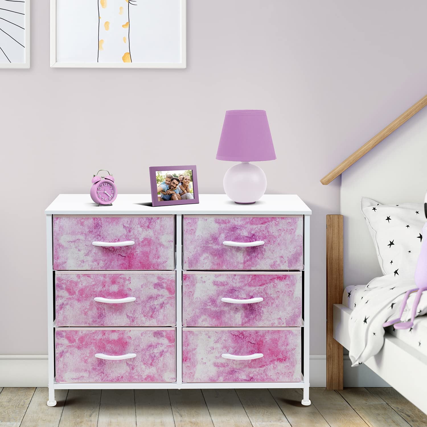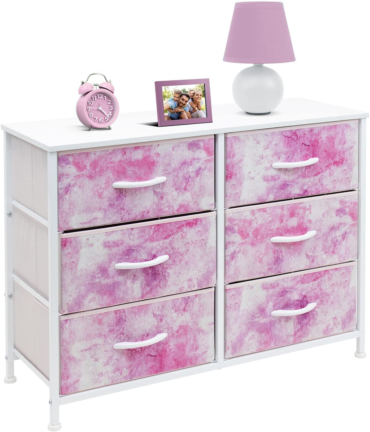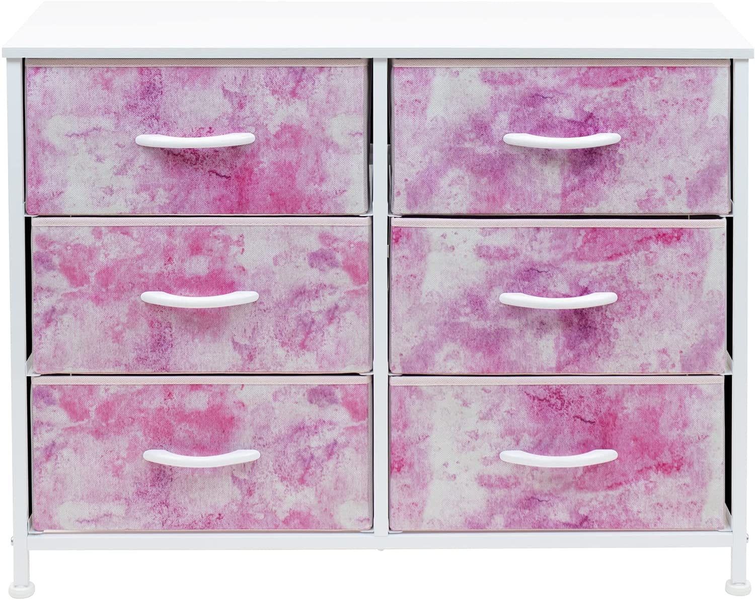 Sorbus Dresser with 6 Drawers – Furniture Storage Chest Tower Unit for Bedroom, Hallway, Closet, Office Organization – Steel Frame, Wood Top, Tie-dye Fabric Bins (6-Drawer, Pink)
