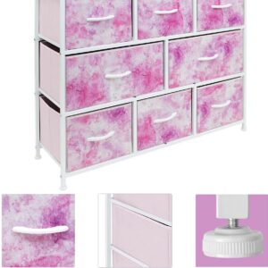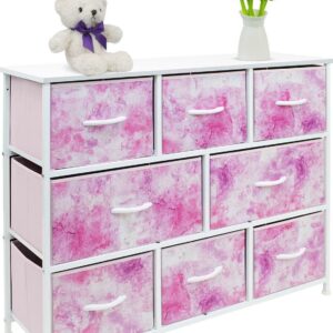 Sorbus Dresser with 8 Drawers – Furniture Storage Chest for Kids Clothing Organization, Bedroom, Hallway, Closet, Office – Steel Iron Frame, Rustic Farmhouse Wood Top, Fabric Bins (Tie-dye Pink)