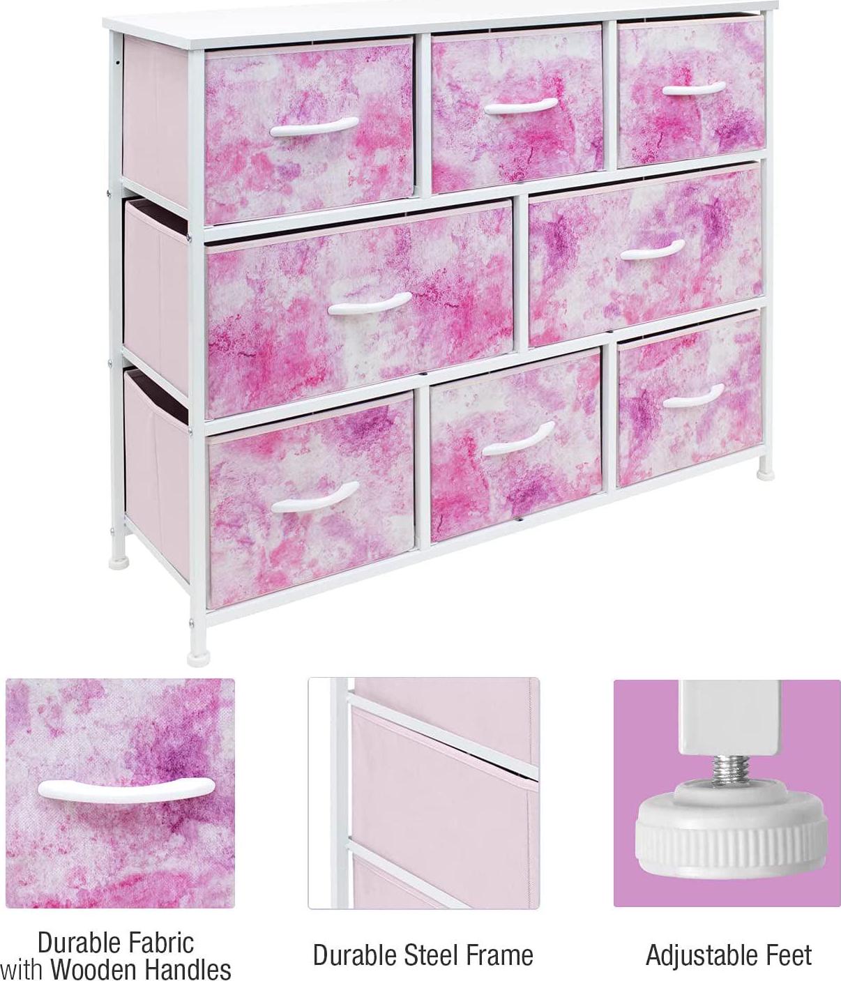 – 8-drawer dresser (Tie-dye Pink).