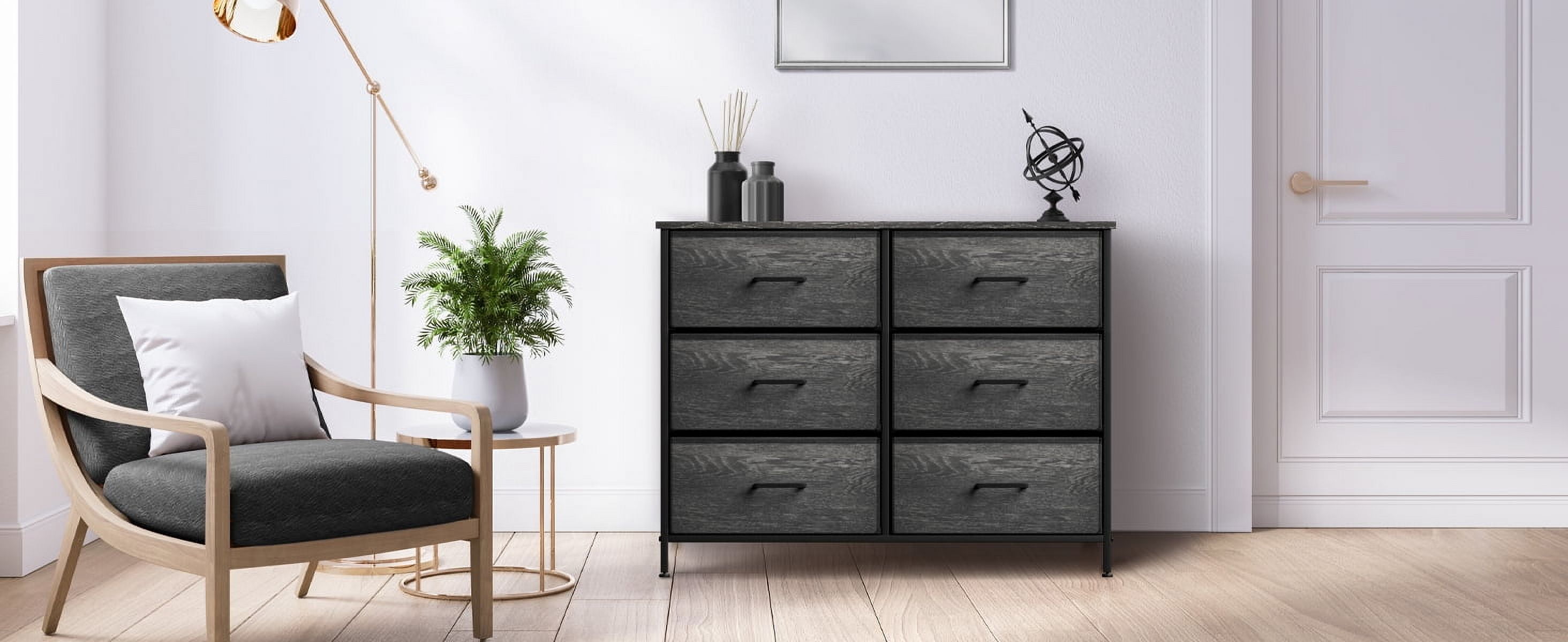 6 Drawer Dresser – The sturdy and durable steel frame offers stable support for your belongings. This dresser is perfect for storing light items such as socks and underwear as well as heavier items including jeans and jackets. Lightweight & Portable— Due to its lightweight and portable design, this fabric dresser will allow you to give a home to all of your belongings while looking good and freeing up valuable space. Multifunctional— Use this dresser in your bedroom for extra storage, or turn it into your TV stand for maximum function. Spaces this dresser can be used in include the following: dorm rooms, apartments, home offices, kids rooms, playrooms, and more. Easy assembly— Put together in minutes! Foldable drawers— All cloth drawers are made of soft fabric and a reinforced base pullout with ease. When not in use, drawers are removable and fold flat