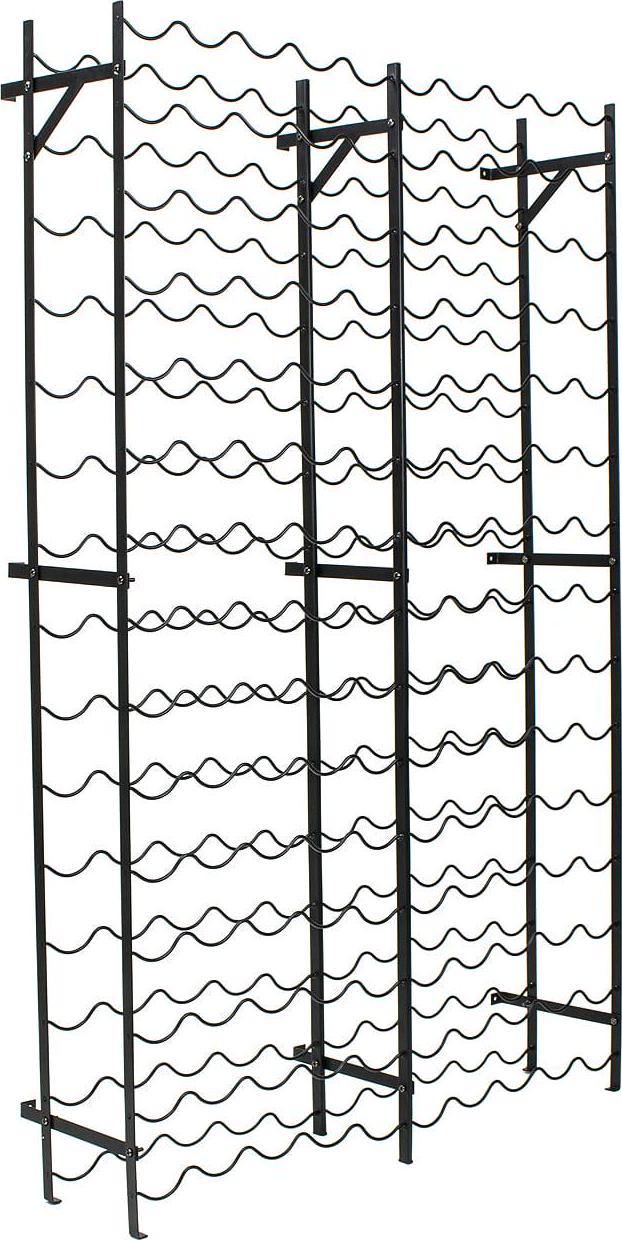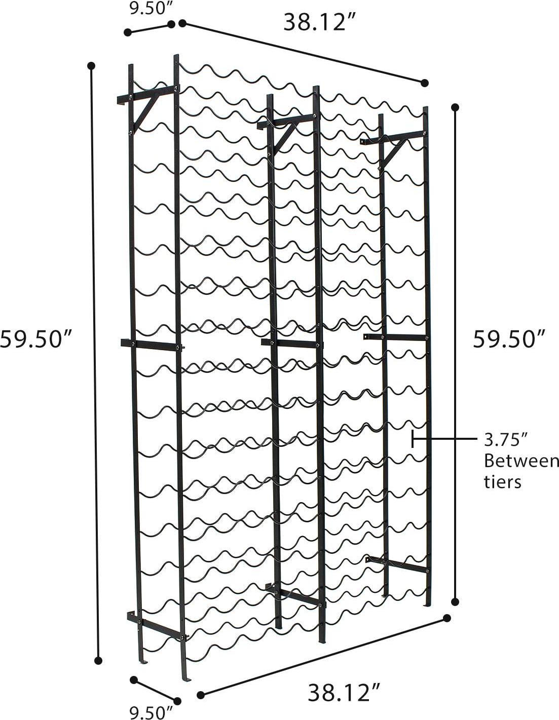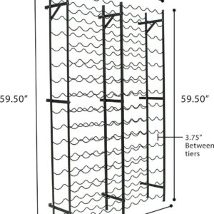 – STURDY DESIGN Made of durable metal construction with smooth black finish Features 15 rows of scallop/wave shaped shelves Solid structure prevents wobbling, tilting, or falling Holds most standard wine bottles Wine Bottles NOT INCLUDED Measures approximately 38 L x 9.50 W x 59.50 H (Approx 3.75 between each tier)