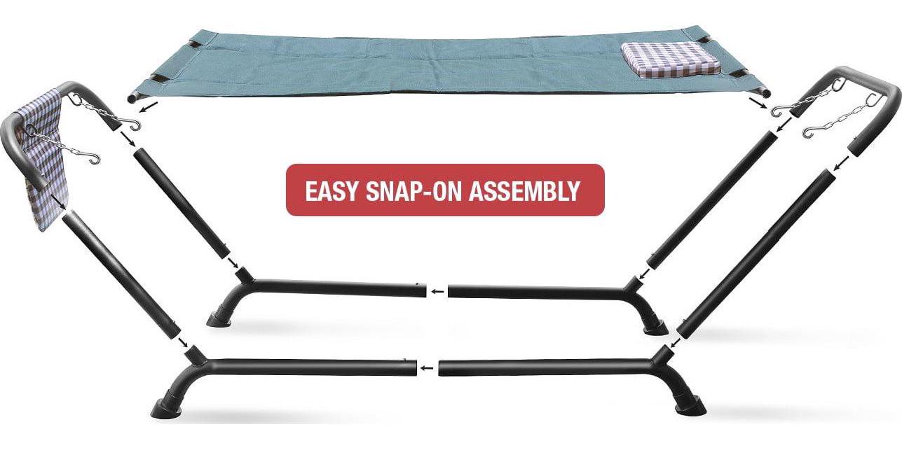 – No more searching for the perfect tree to hang your hammock, lounge anywhere with a hammock bed supported by sturdy chains on a freestanding frame