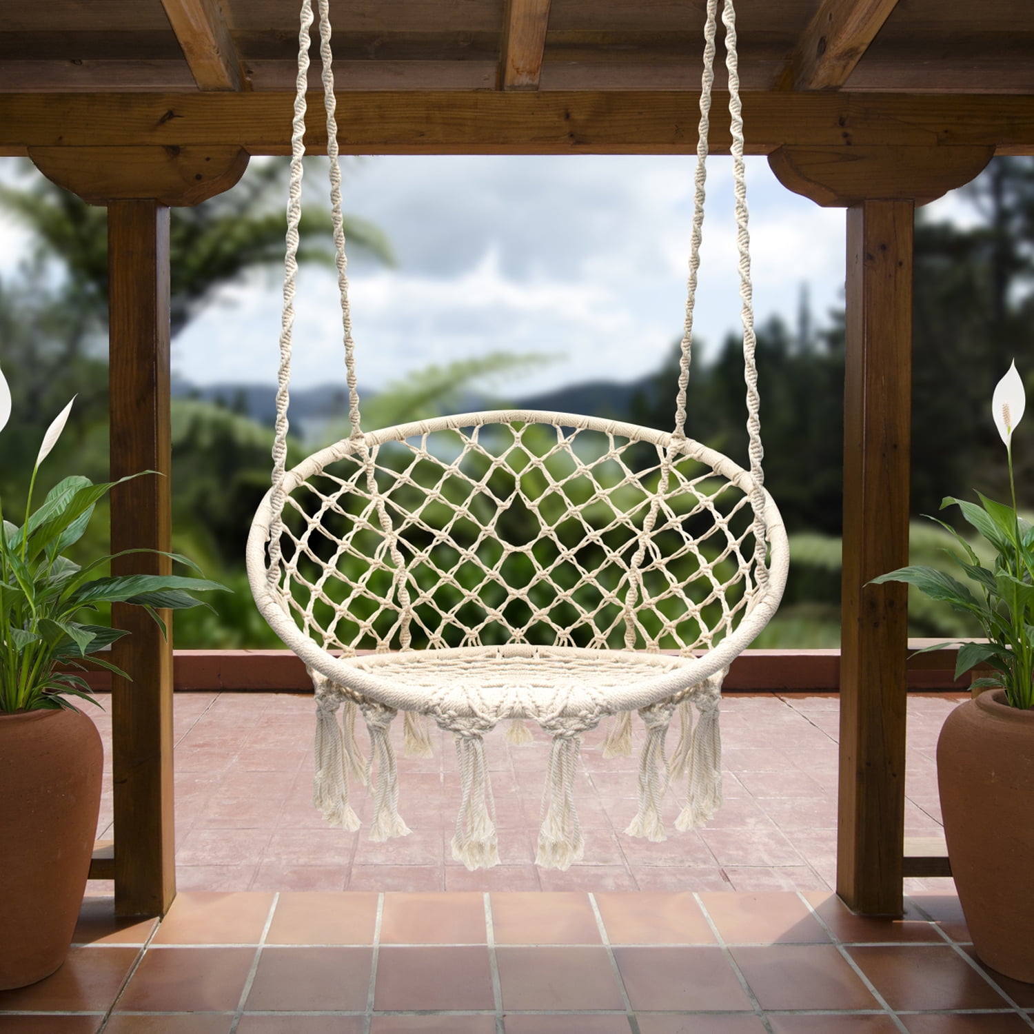 Swing into relaxation with the Sorbus Macrame Hammock Chair. This trendy hammock chair swing is the perfect addition to your home, patio, or garden. It features a sturdy frame for durability with tasteful bohemian style for a casual-retro touch. When you’re ready to relax and unwind, hang it from any sturdy overhang to create a cozy resting spot. It’s versatile enough to function as hammock chair for lounging or to display as a unique centerpiece. Great for any season, you’ll be swinging in style from almost any location you desire. From the bedroom to the patio, this swing is a cozy way to enjoy every minute of your leisure time. Lounge around the patio all season long or enjoy adventure in the most unexpected places. Hang your swing in the bedroom anytime you need to curl up and get away or mount it in a playroom, living room, or sunroom. Spend the day reading on the deck, relaxing by the pool, or nestling into a cocoon on the patio.