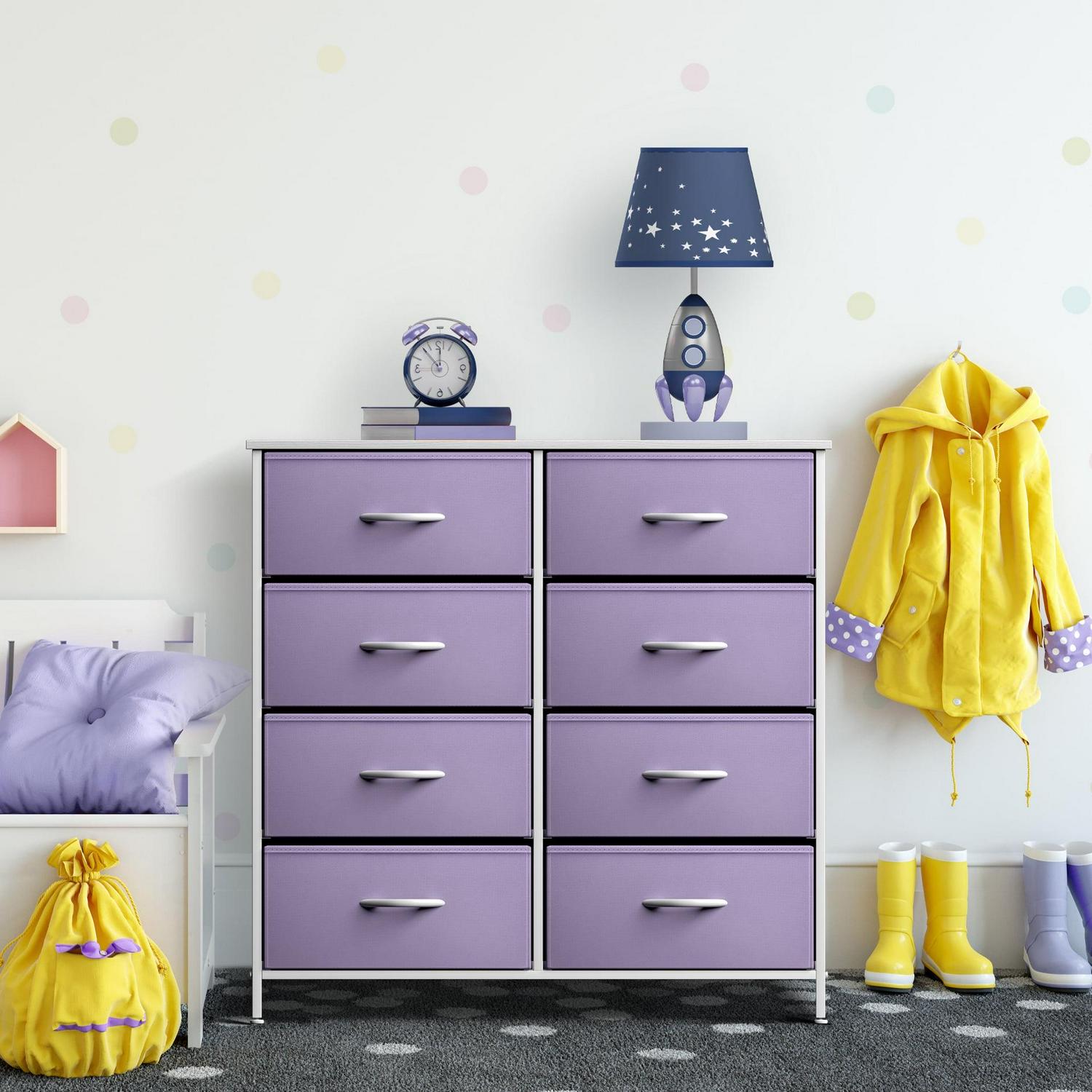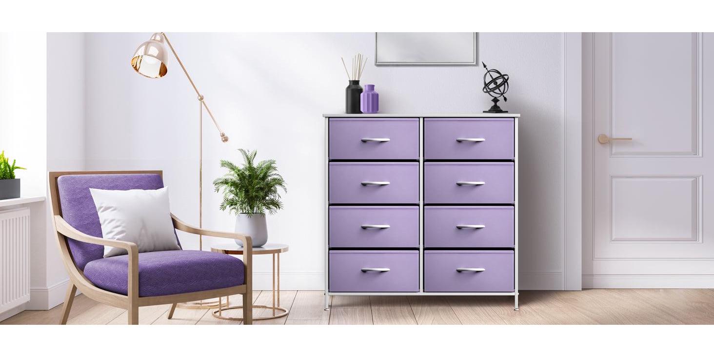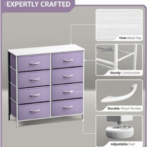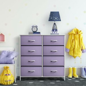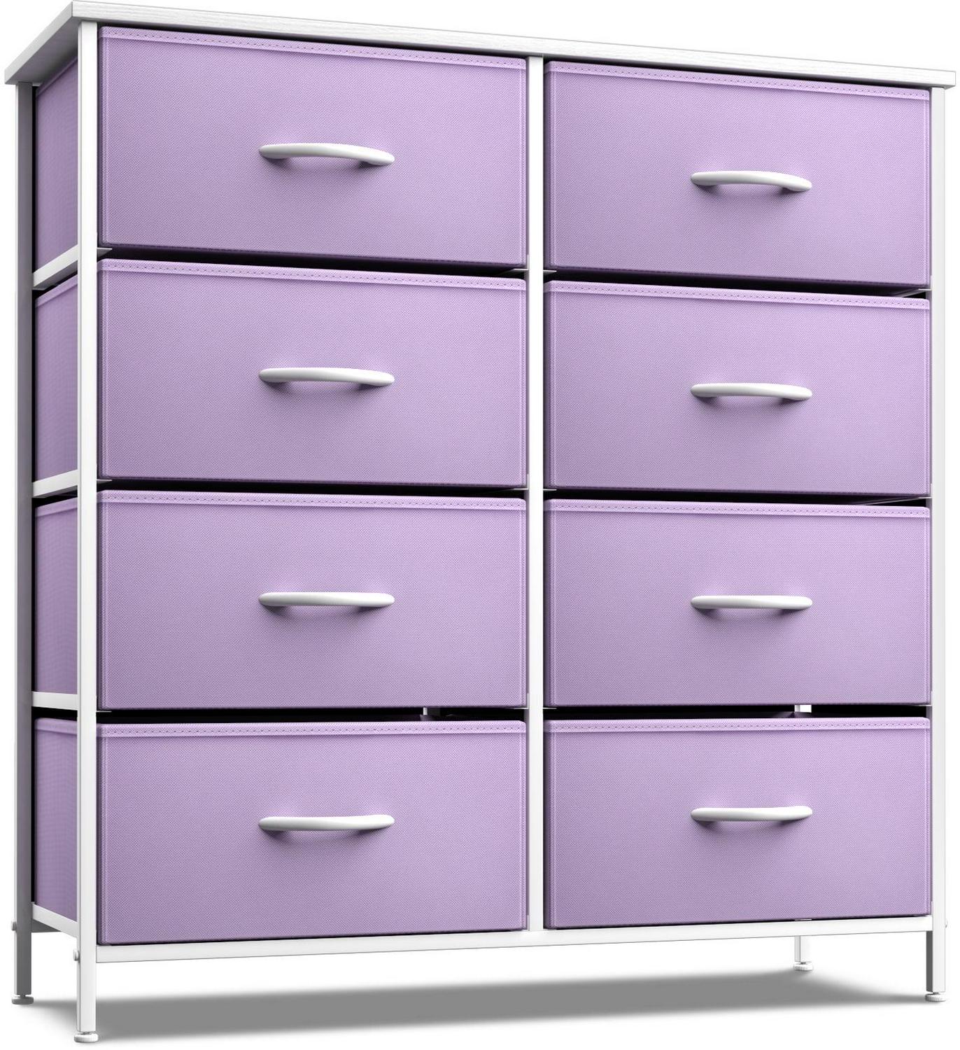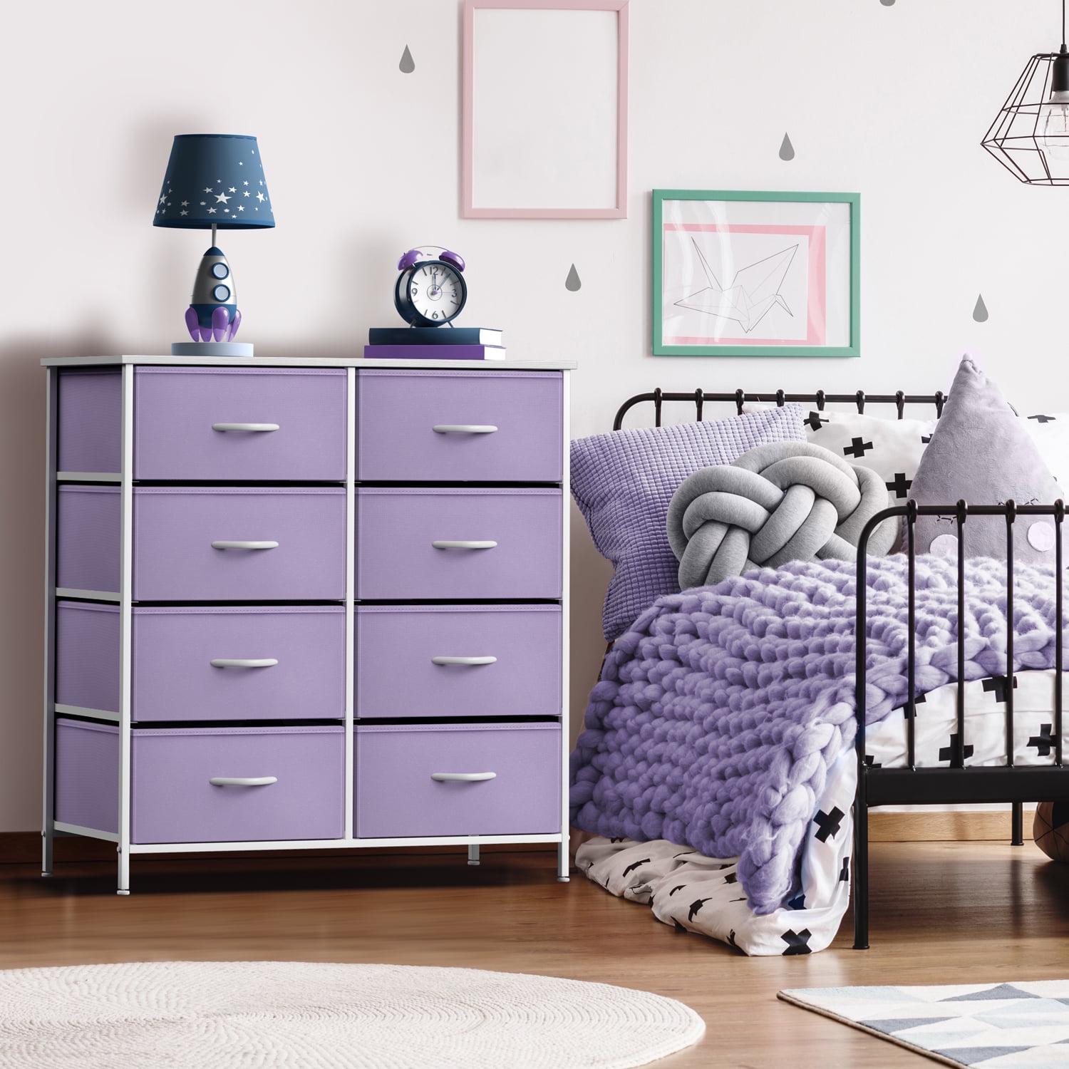 Sorbus Kid Dresser with 8 Fabric Bin Drawers – Pastel Color Furniture Storage Chest – Bedroom, Closet, and Toys Organizer – Purple