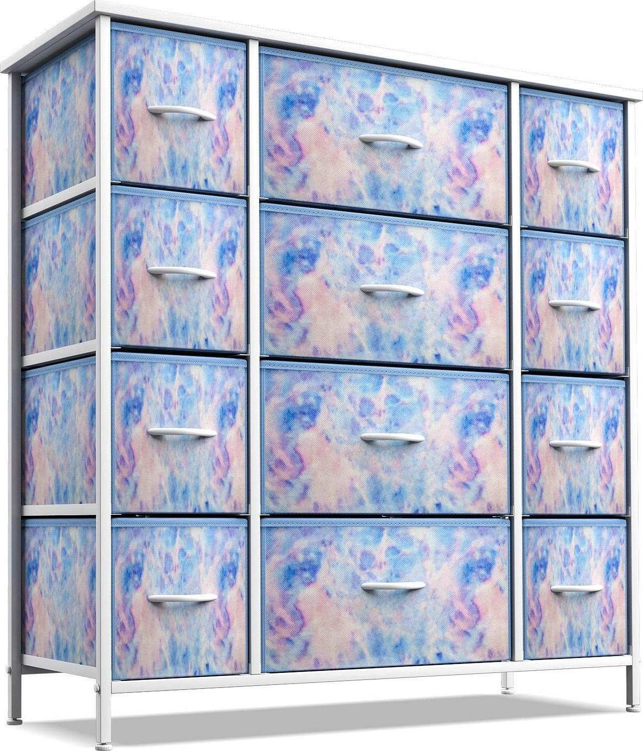 – 12-drawer dresser (tie-dye blue).