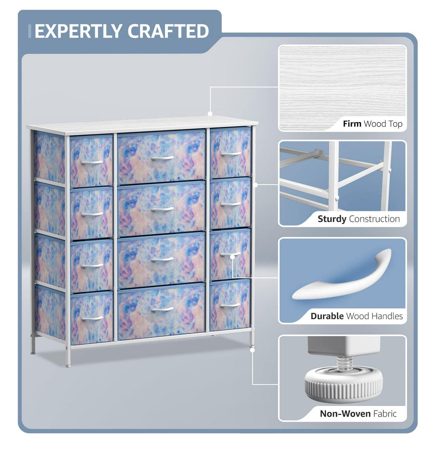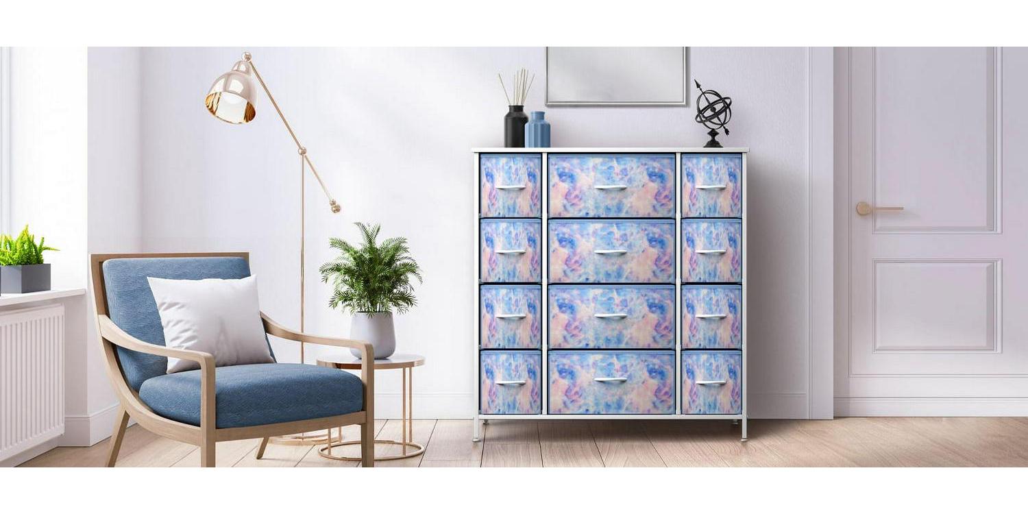Update your child s room with the Sorbus 12-Drawer Dresser, This colorful dresser chest features a tabletop surface and pull-out drawers to tuck away household clutter. Place all of your child s folded t-shirts, jeans, pajamas, or extra blankets and toys within the spacious fabric drawers. For display, the top surface can be used for lamps, books, clocks, and more. The playful tie-dye color combo makes this furniture storage charming for any nursery, playroom, or bedroom. It is lightweight for easy transport and when not in use, simply fold the fabric drawers flat for storage. Complete the look with any style from the Sorbus Furniture Collection. A great addition to any room. Bring on the toys, books, and blankets! Display this charming dresser in the kid s bedroom filled with linens and clothes or play area complete with coloring books, Legos, plushies, and dolls! The soft, lightweight fabric makes it easy for kids to pull out their favorite toys for play dates or easily put them away. In the nursery, this chest brightens up your little one s sleeping space for stylish baby storage. With kids and teens in mind, it complements pastel rainbow decor, unicorn themes, and trendy Ombre colors for a fun look.