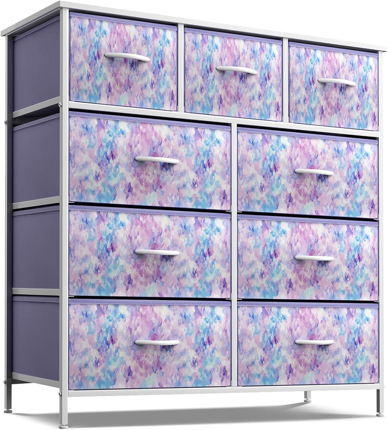 – 9-drawer dresser (Tie-dye Blue / Pink / Purple).