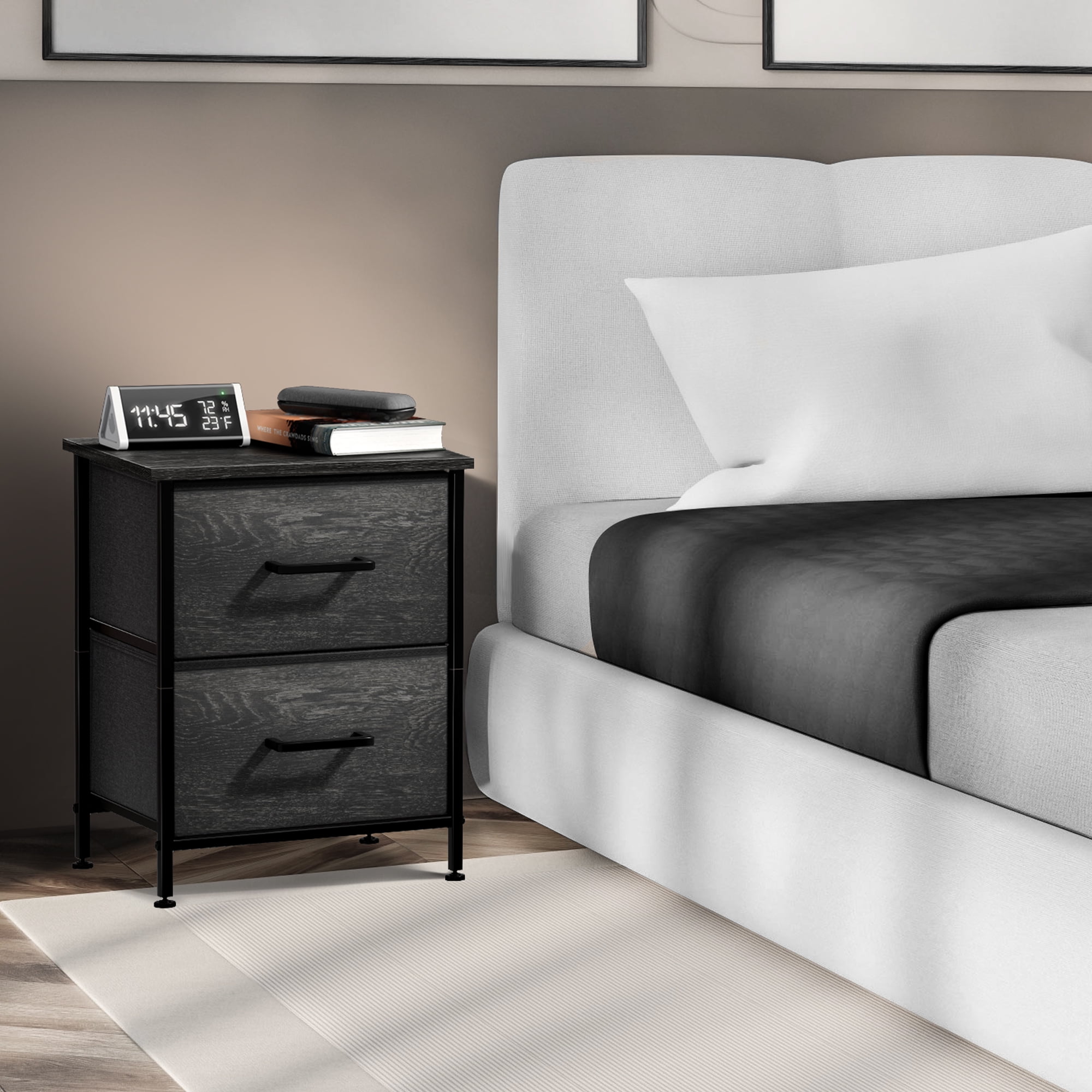 Fabric Nightstand with 2 Drawers — Sorbus Nightstand with Drawers features a sturdy steel frame, polyester fabric drawers, durable handles, and a wooden, water-proof top Multifunctional — Use as a nightstand, end table, side table, bedside table, in the living room, college dorm room, bedroom, bathroom, hallway — Great for small apartments Display & Organize — Store clothes, blankets, crafts, linens, baby clothes, lingerie, purses, scarves, socks, accessories, gadgets, toiletries, makeup, cosmetics, office supplies, toys, knitting supplies, and more Easy assembly — Put your dresser together in minutes so you can organize your home right away Sturdy Design — The sturdy and durable steel frame offers stable support for your belongings. This dresser is perfect for storing light items such as socks and underwear as well as heavier items including jeans and jackets.