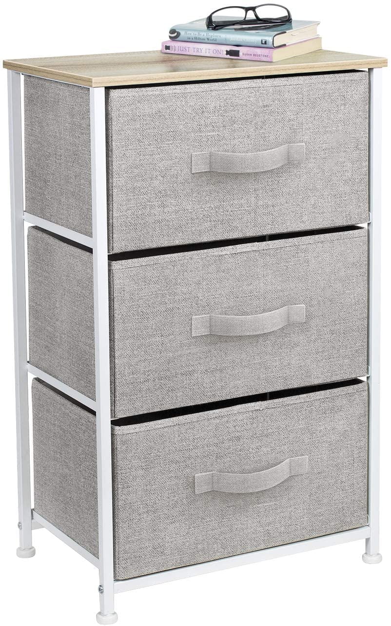 Sorbus Nightstand with 3 Drawers – Bedside Furniture & Accent End Table Storage Tower for Home, Bedroom Accessories, Office, College Dorm, Steel Frame, Wood Top, Easy Pull Fabric Bins (Beige)