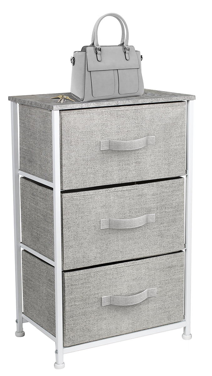Sorbus Nightstand with 3 Drawers – Bedside Furniture & Accent End Table Storage Tower for Home, Bedroom Accessories, Office, College Dorm, Steel Frame, Wood Top, Easy Pull Fabric Bins (Grey)