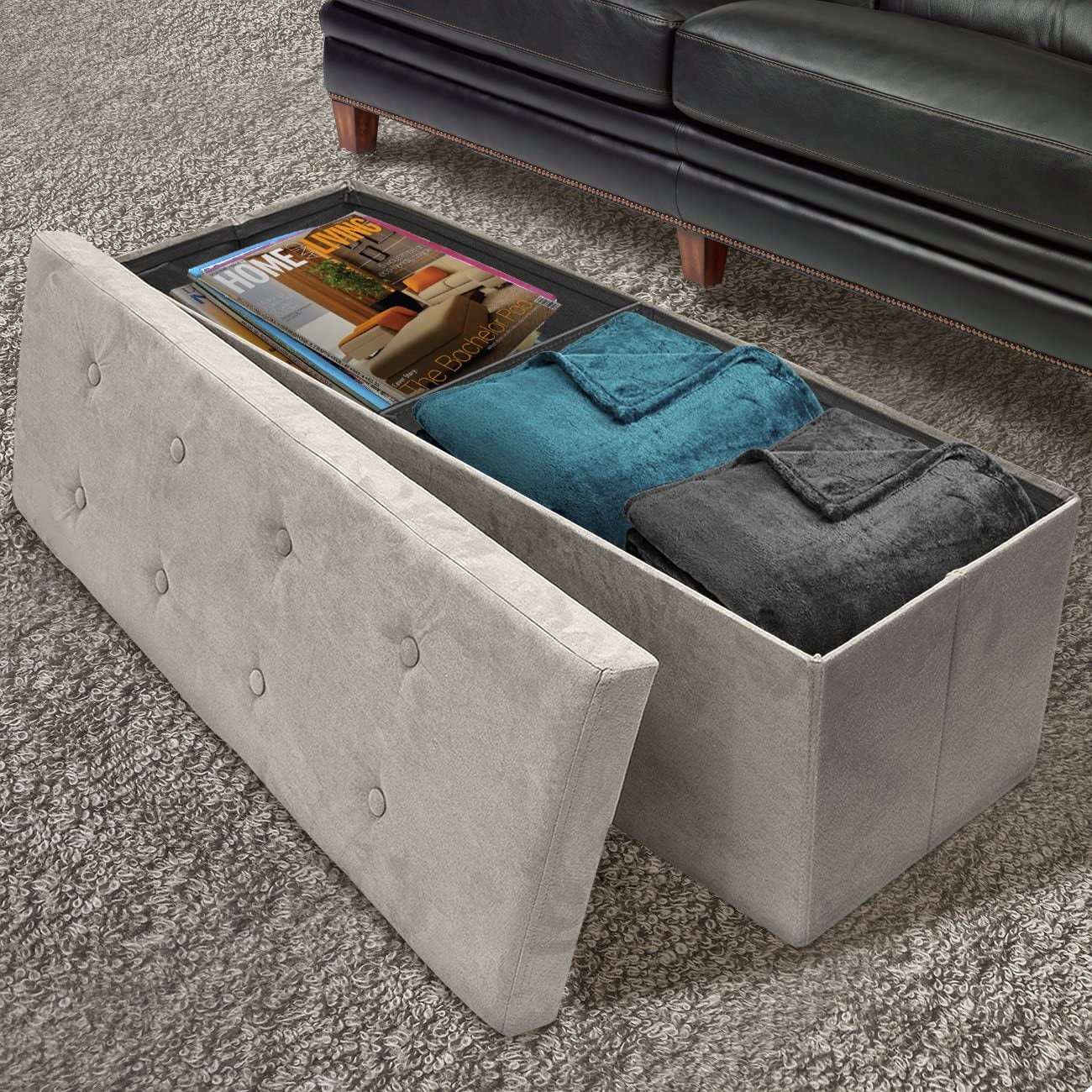 Sorbus Storage Bench Chest with Collapsible/Folding Bench Ottoman with Cover, 43” L x 15” W x 15” H