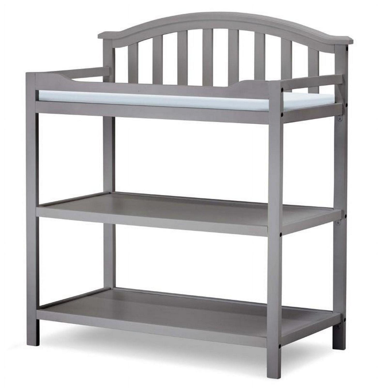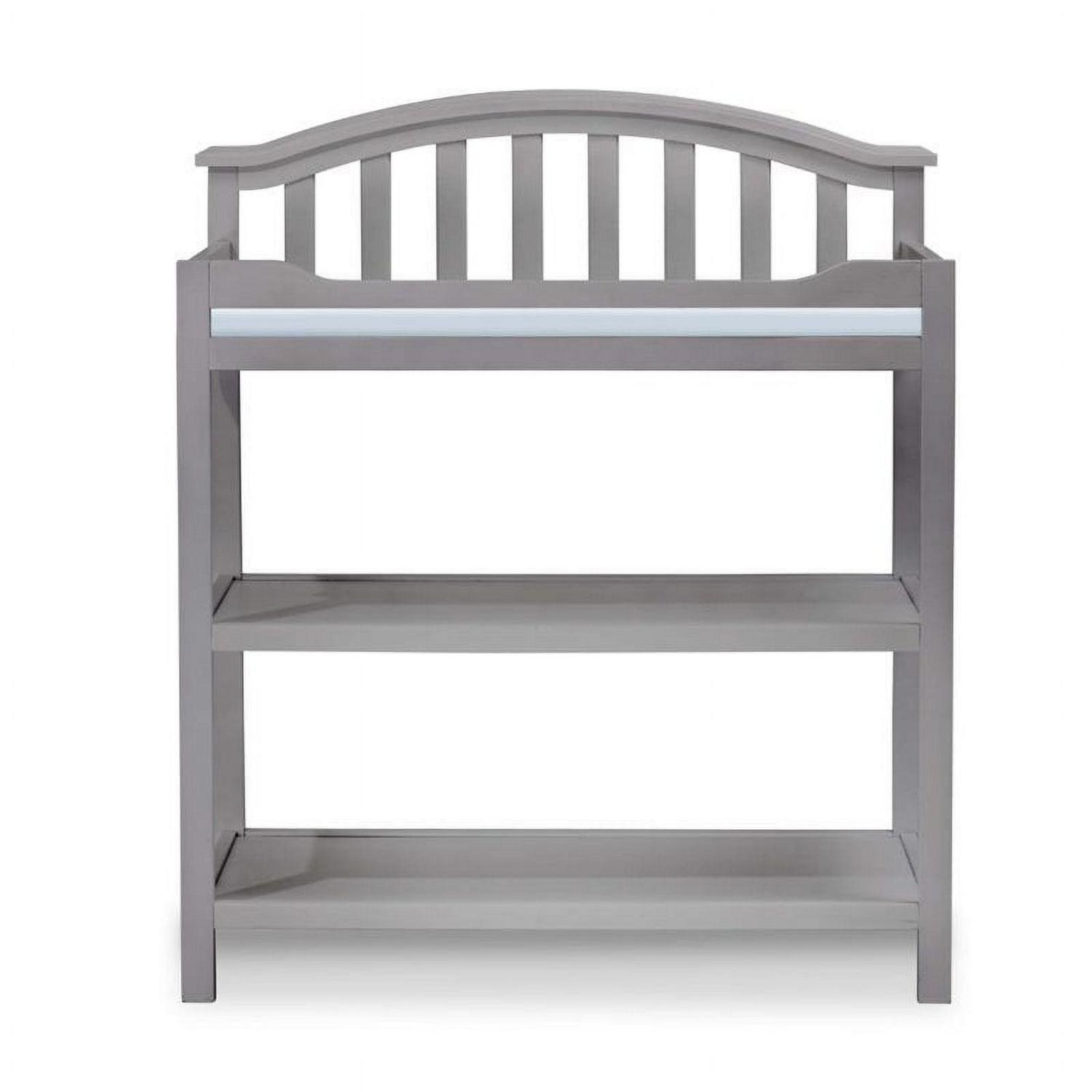 Changing table with pad, belt and 2 open shelves. Classic style with gently curved back. Features sturdy construction in a durable finish.