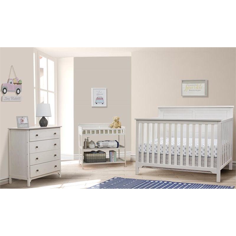 – This Farmhouse room-in-a-box includes a crib, changing table, and 4 drawer dresser.