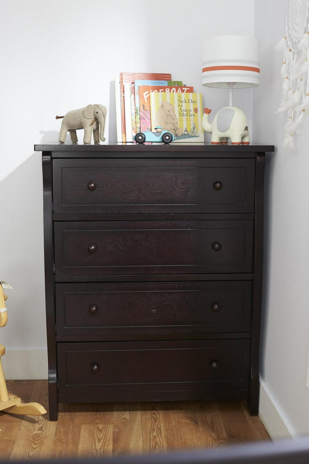 Add the timeless design of the Sorelle Princeton Elite 4 Drawer Dresser to your child s room. The dresser is constructed from pine with veneer panels and comes in your choice of available finishes. It has four spacious drawers that glide on metal drawer runners. Match this drawer dresser with others from the Princeton Elite Collection.