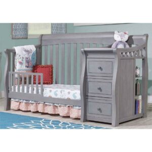 The Sorelle Princeton 4-in-1 Convertible Crib with Changer offers a unique crib design with attached changer for an attractive, convenient addition to any nursery. As your child grows older, the changer easily detaches and the crib converts into a toddler bed and full size bed with use of required conversion rails. The Sorelle Princeton 4-in-1 Convertible Crib with Changer is made from Pine wood and features smooth, hand rubbed surfaces and corners. The changer detaches from the crib only when you re ready to convert to a full size bed.