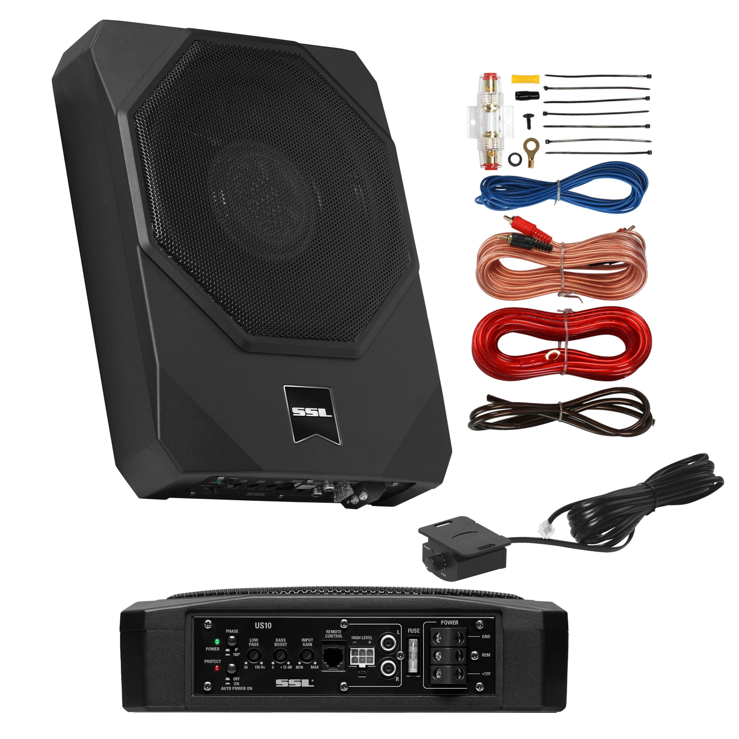 Sound Storm Laboratories US10K 10 Inch Under Seat Powered Car Audio Subwoofer – 1000 Watts Max, Low Profile, Built in Amplifier, For Truck, Boxes and Enclosures, Remote Subwoofer Control Amplified Car Subwoofer – 1000 Watts Max Power, Low Profile, 10 Inch Subwoofer, 8 Gauge Installation Included
