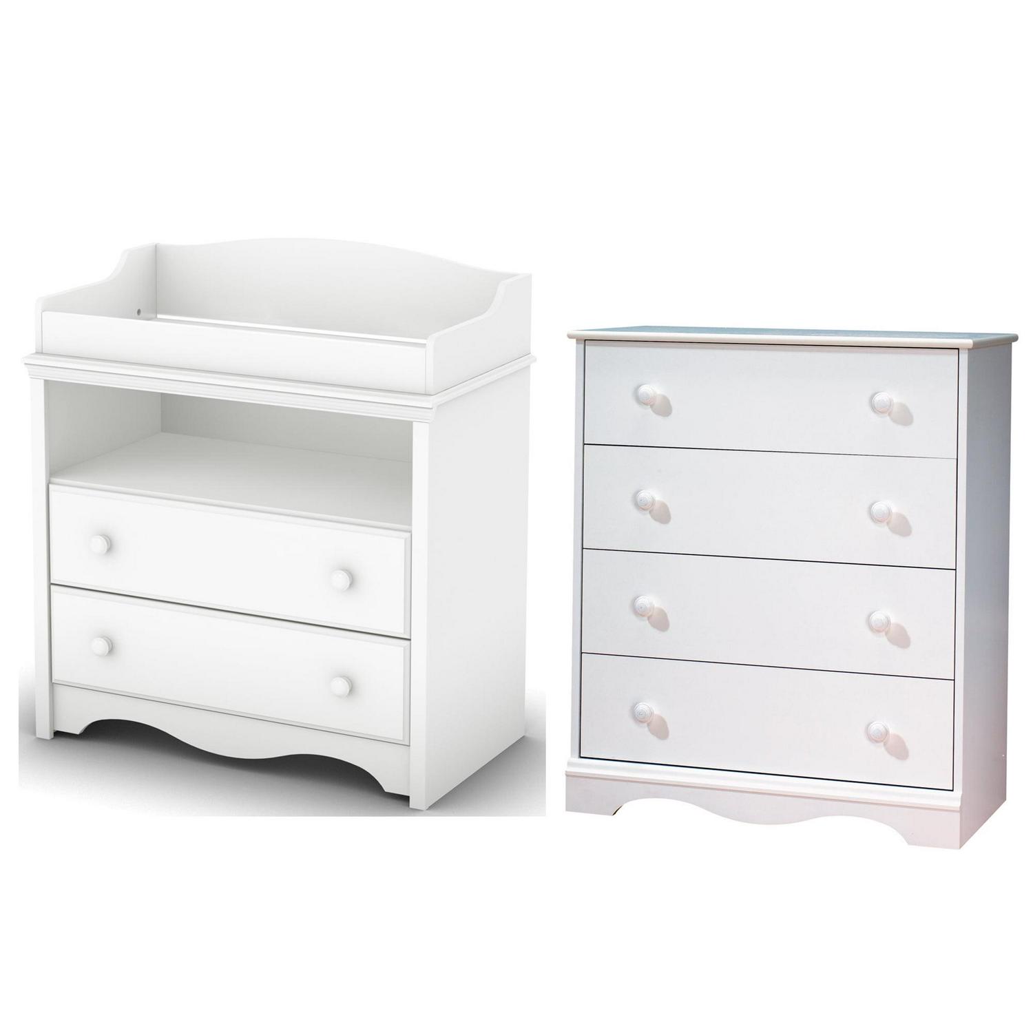 South Shore Angel Changing Table and 4-Drawer Chest Set, White