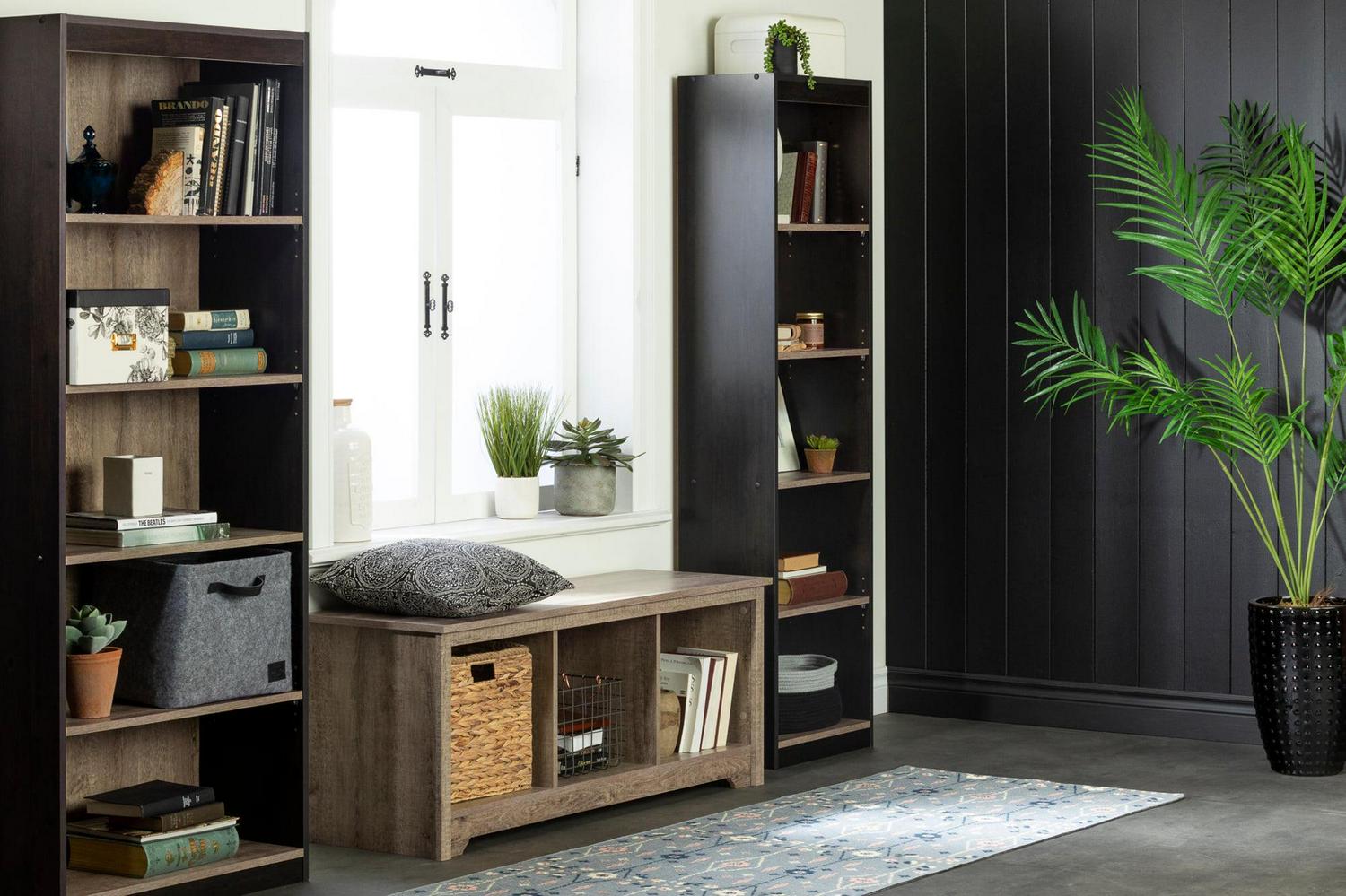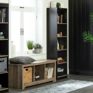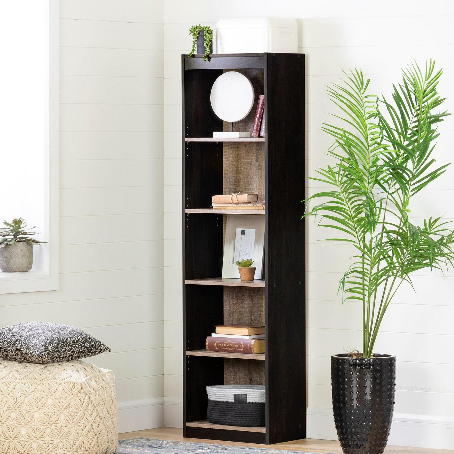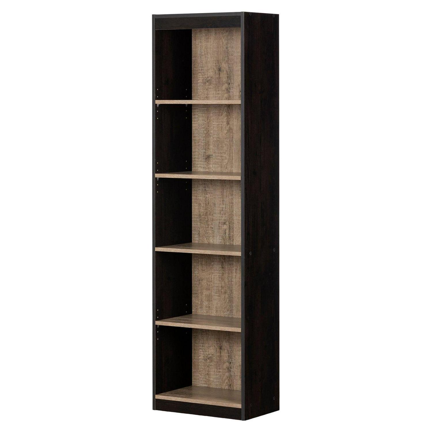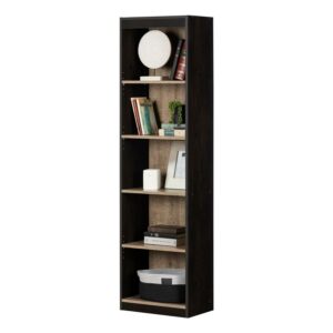 South Shore Axess, Contemporary 5-Shelf Narrow Bookcase, Rubbed Black and Weathered Oak