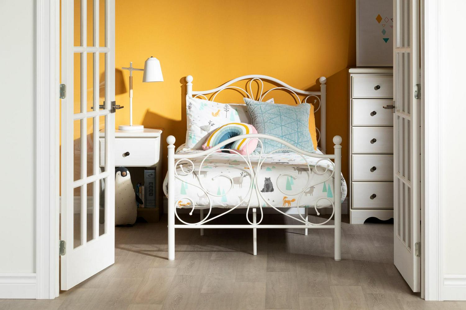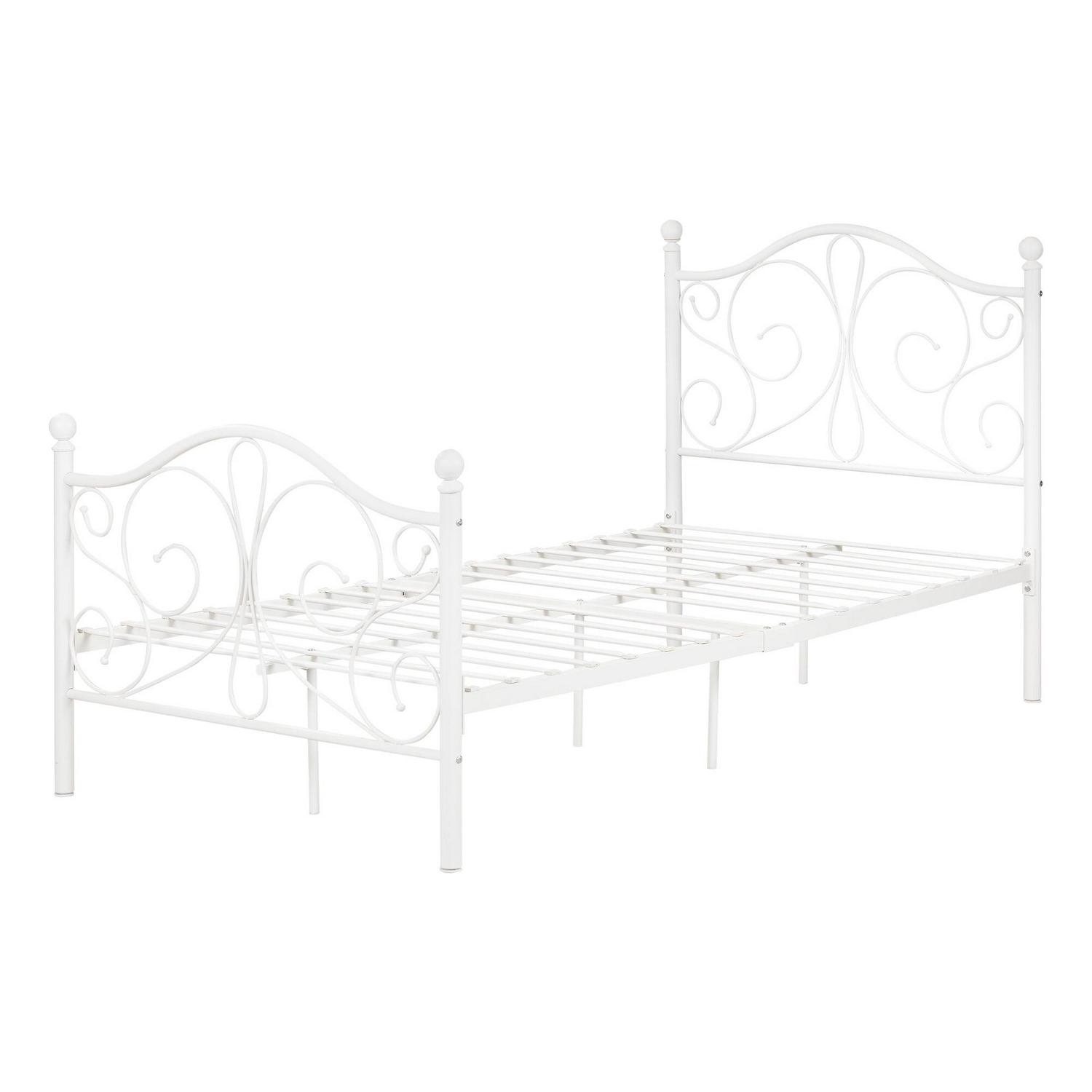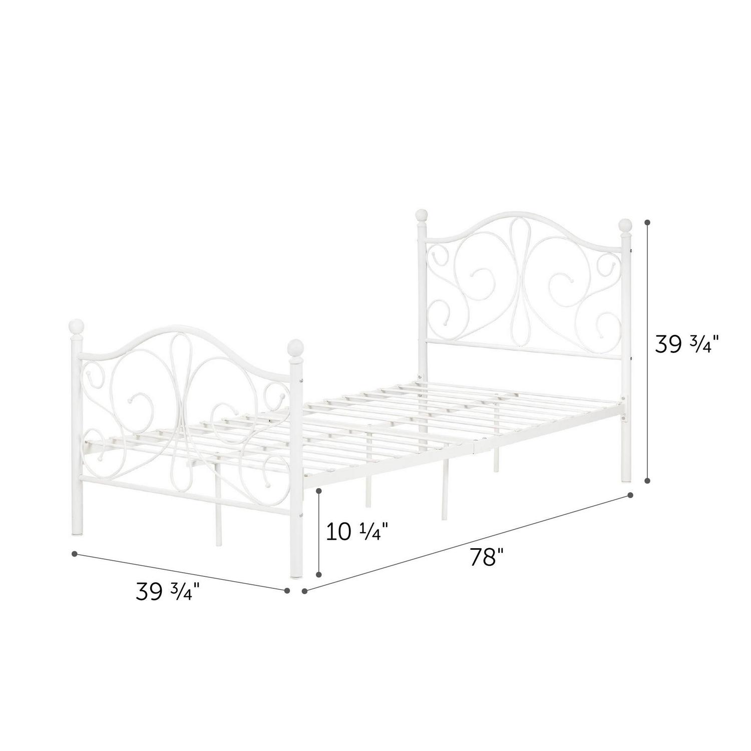 South Shore Country Poetry Complete Metal Platform Bed, White, Twin