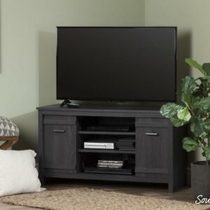 South Shore Exhibit, Farmhouse Corner TV Stand, Gray Oak