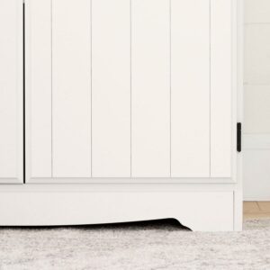 This storage unit fits right in with today s trends! It’s farmhouse style is one of the most popular in interior design. The paneling look on the doors, the kick plate, and the decorative moldings give this buffet a warm, charming look. It’s pretty handles and metal hinges complete the look, for a modern country house allure.