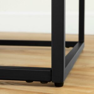 Add an Industrial touch to your living room with this coffee table featuring graphic lines. The rectangular metal frame looks like it supports the table top, while giving it a light, airy look.